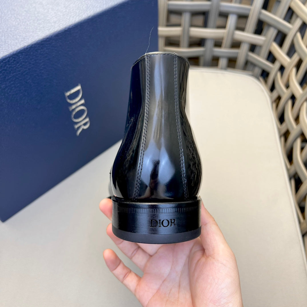 CD HOMME LACE-UP ANKLE BOOT GLOSSY BLACK CALFSKIN