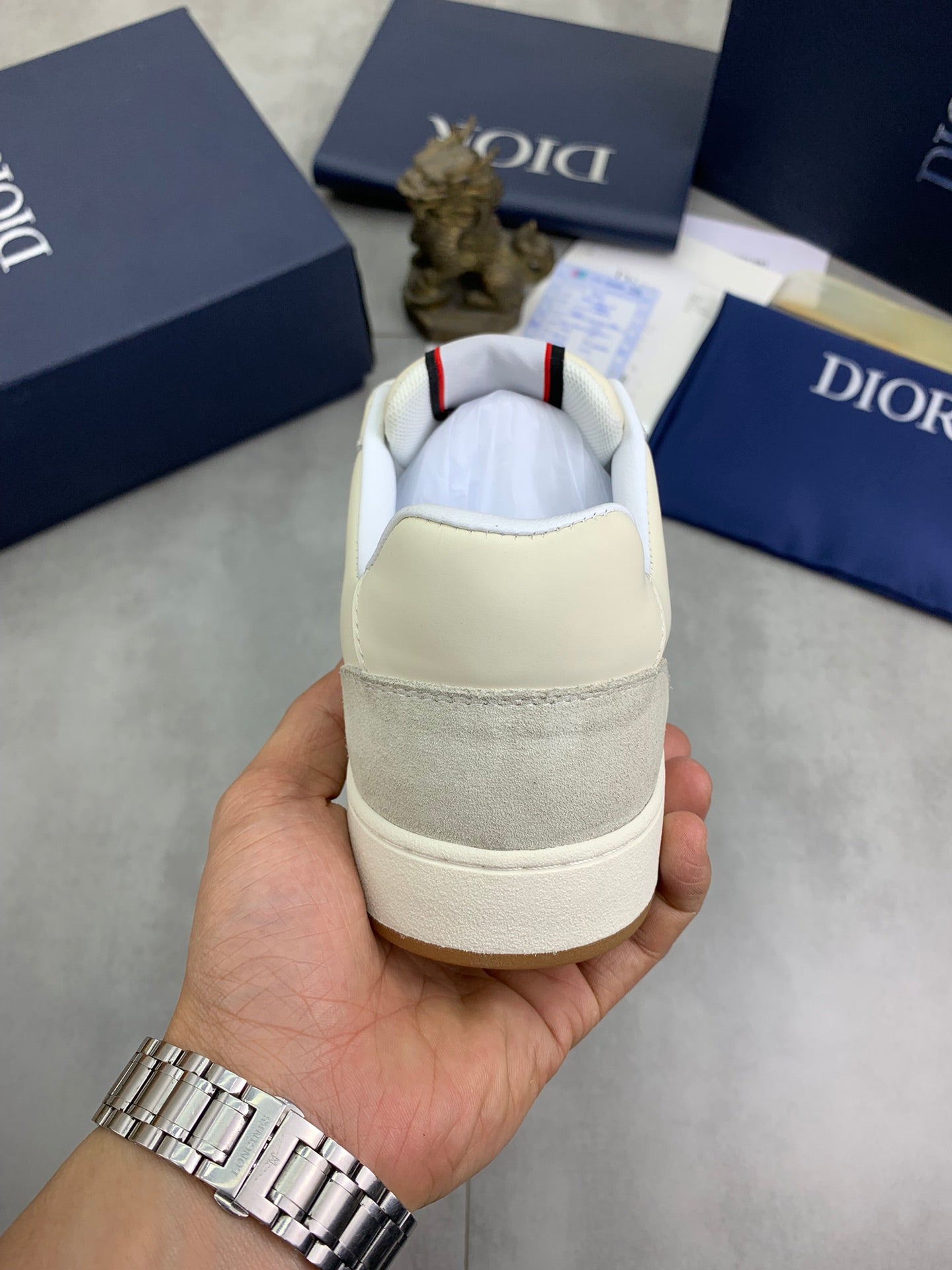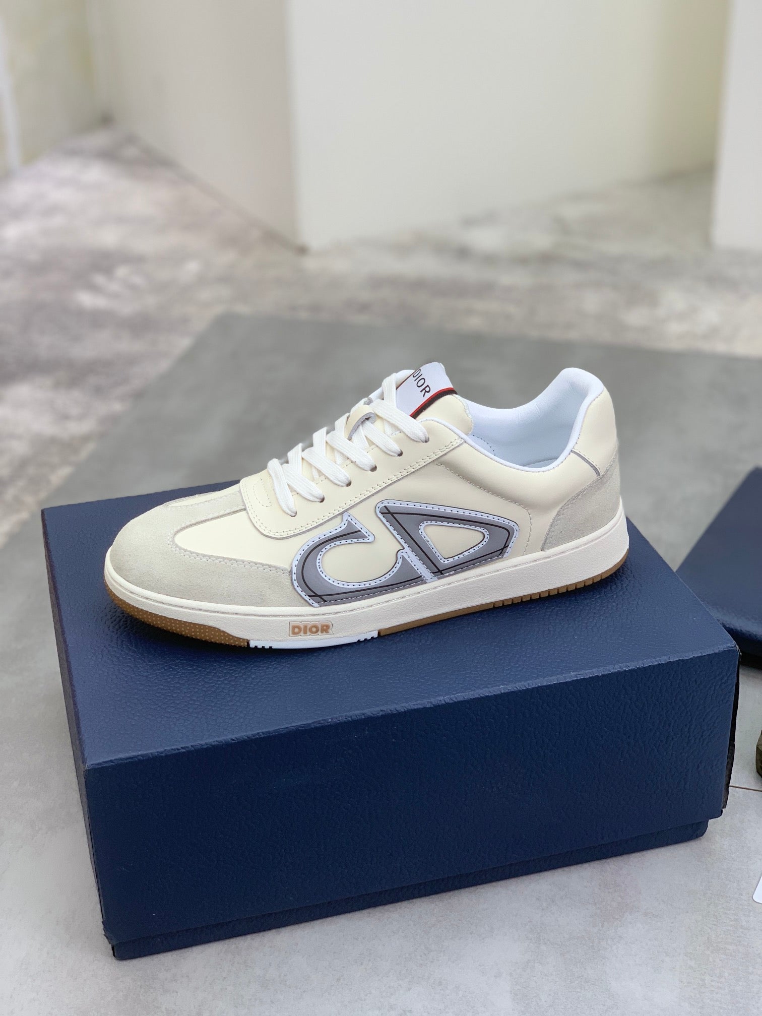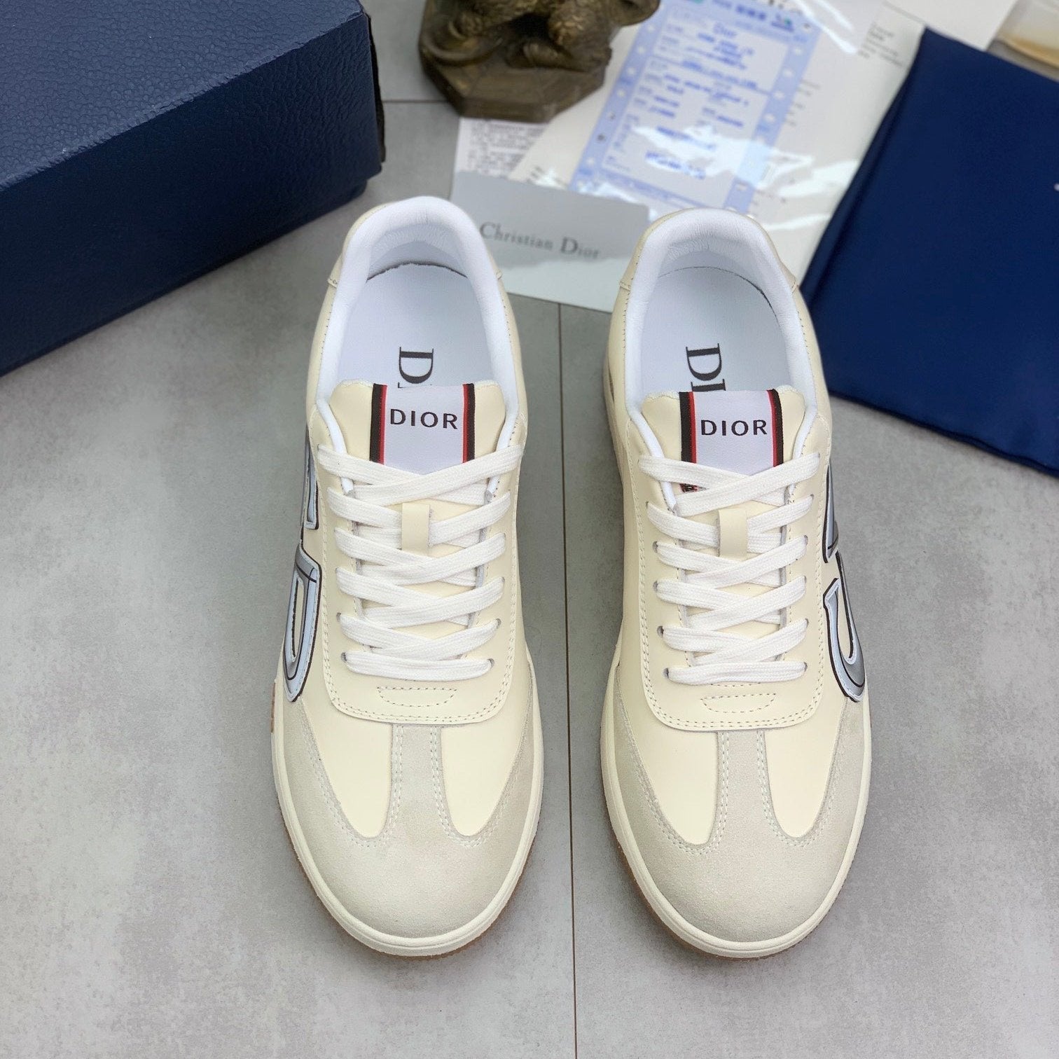 CD HOMME SNEAKERS IVORY CALFSKIN AND SUEDE