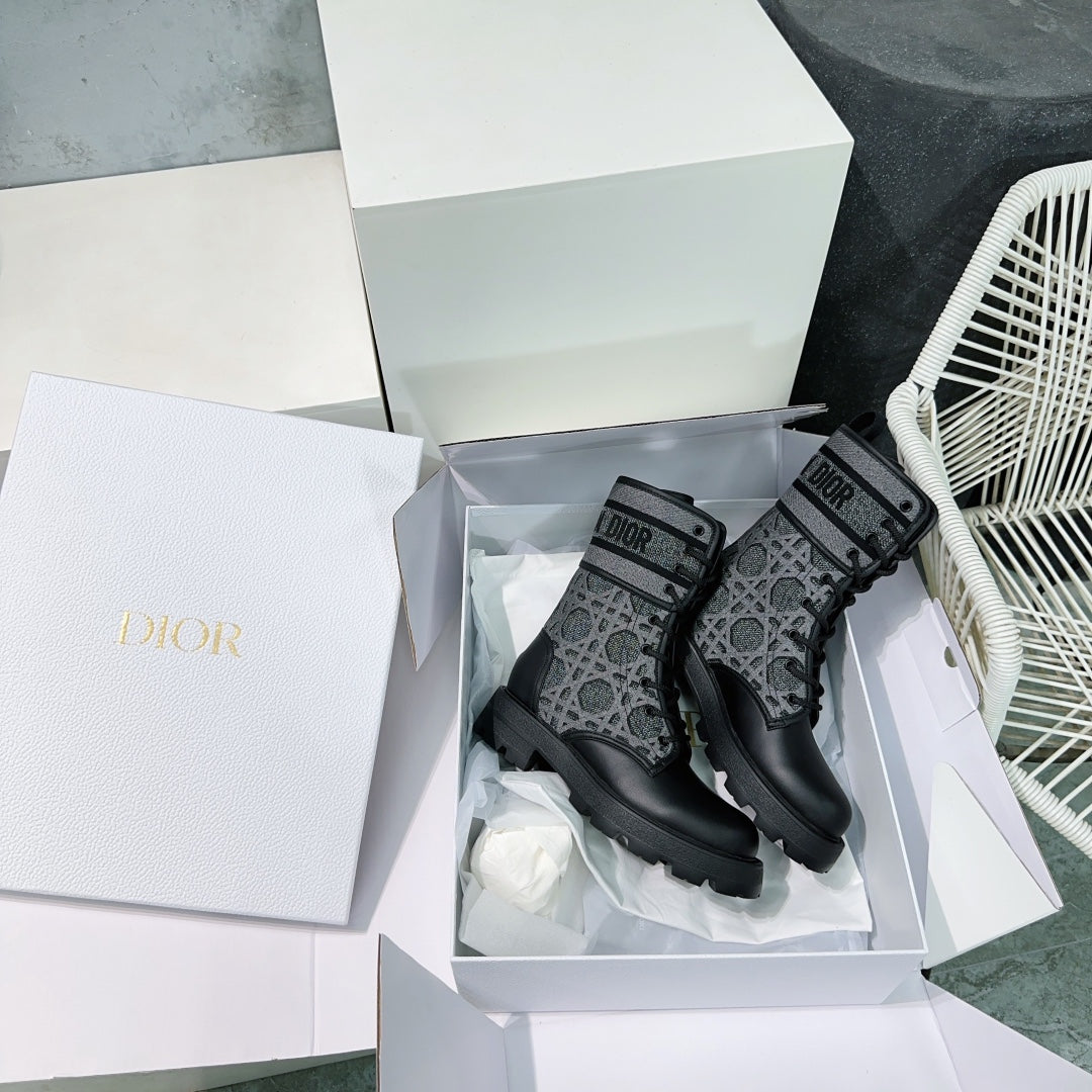 CD Major Ankle Boots Black Grey Calfskin And Fabric Canvas