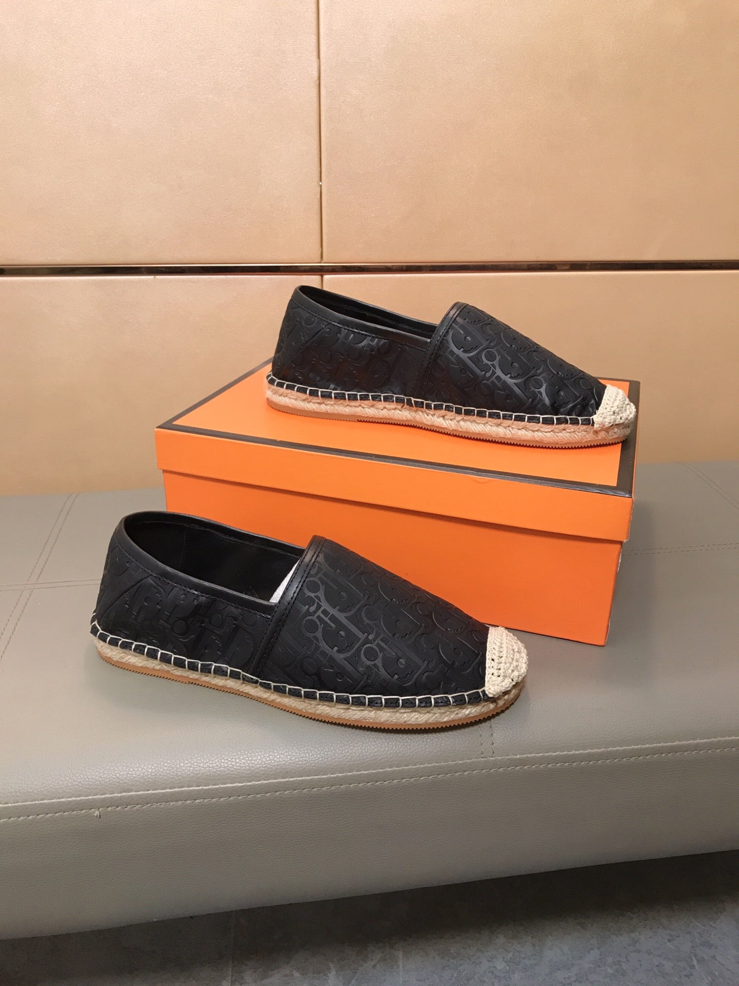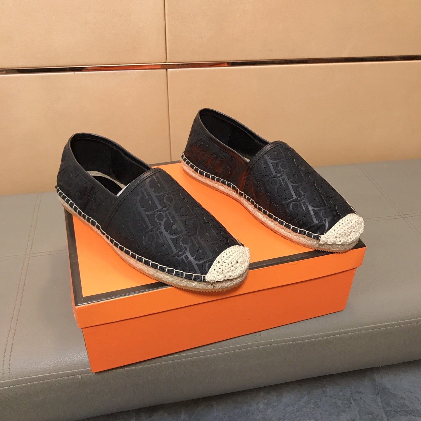 CD PARADISE ESPADRILLE LOAFER BLACK EMBOSSED CALFSKIN