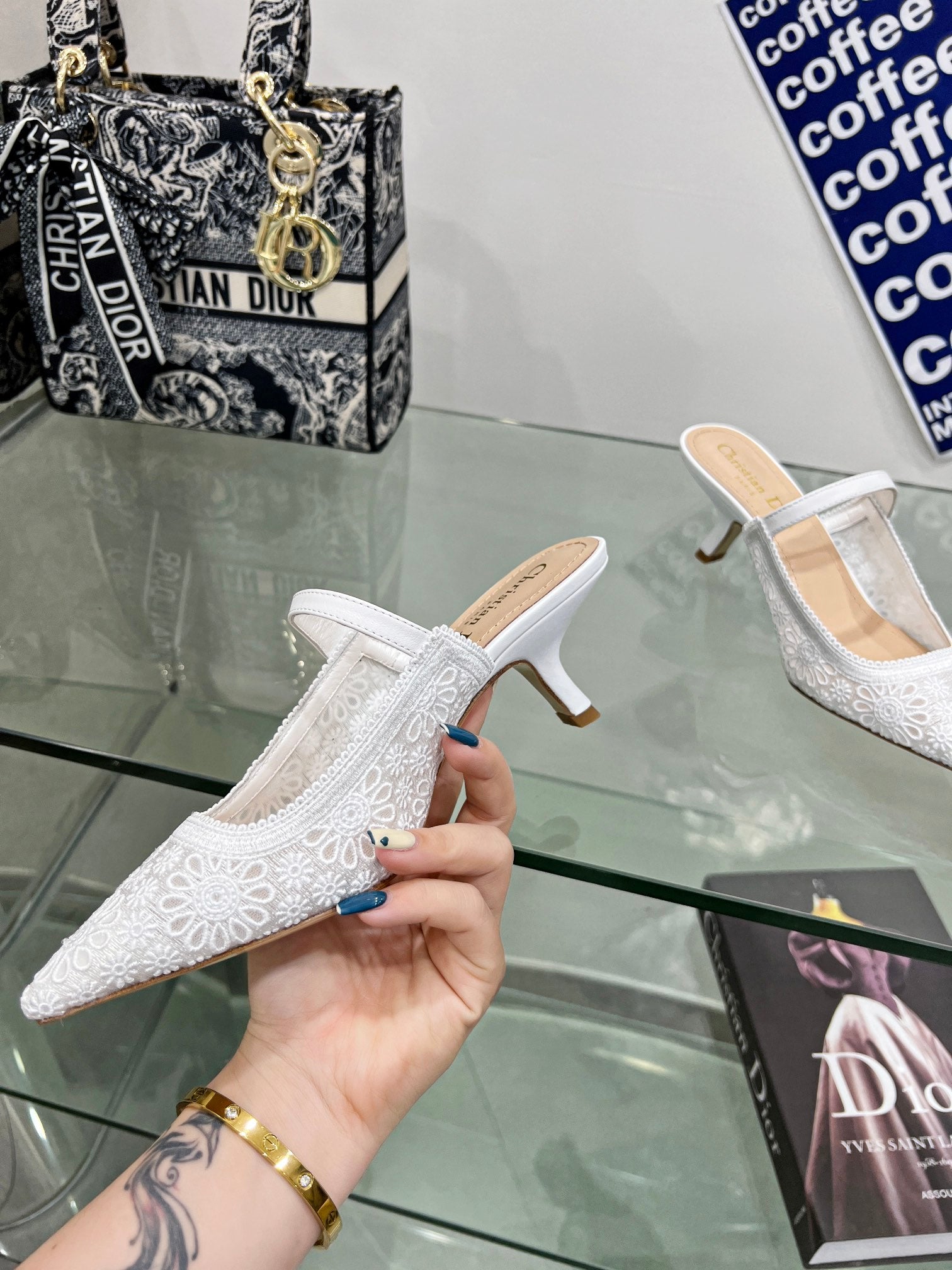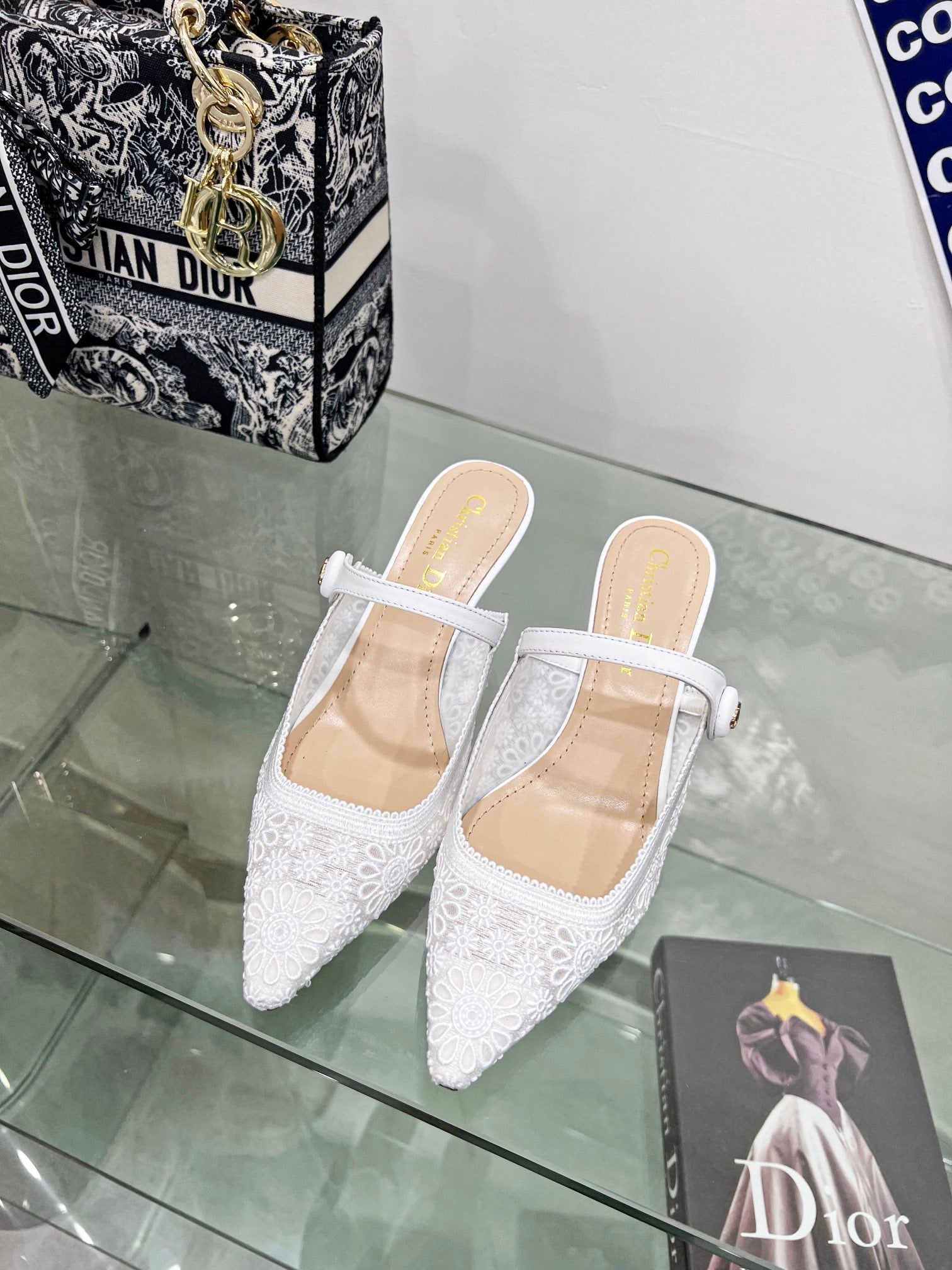 - Material: Calfskin, transparent mesh embroidered