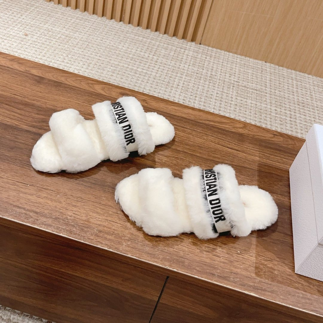 CD Sandal White Black Fleece And Canvas Fabric