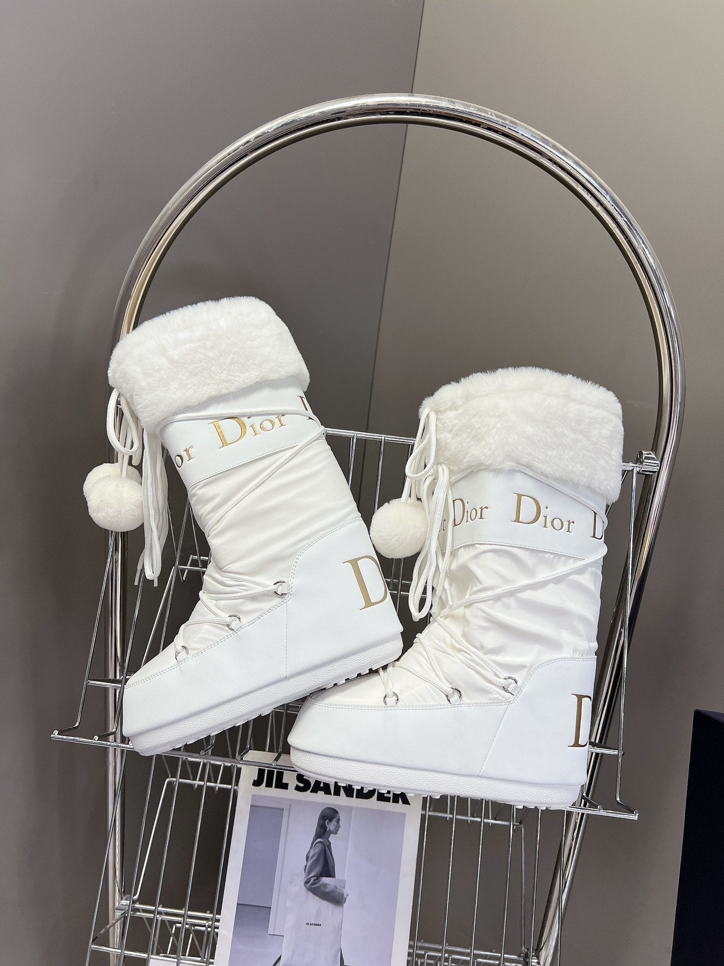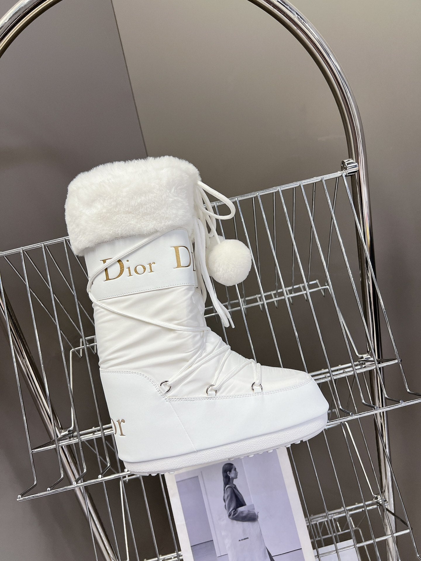 CD Short Boots 60mm In White Cowhide With Feather 989719