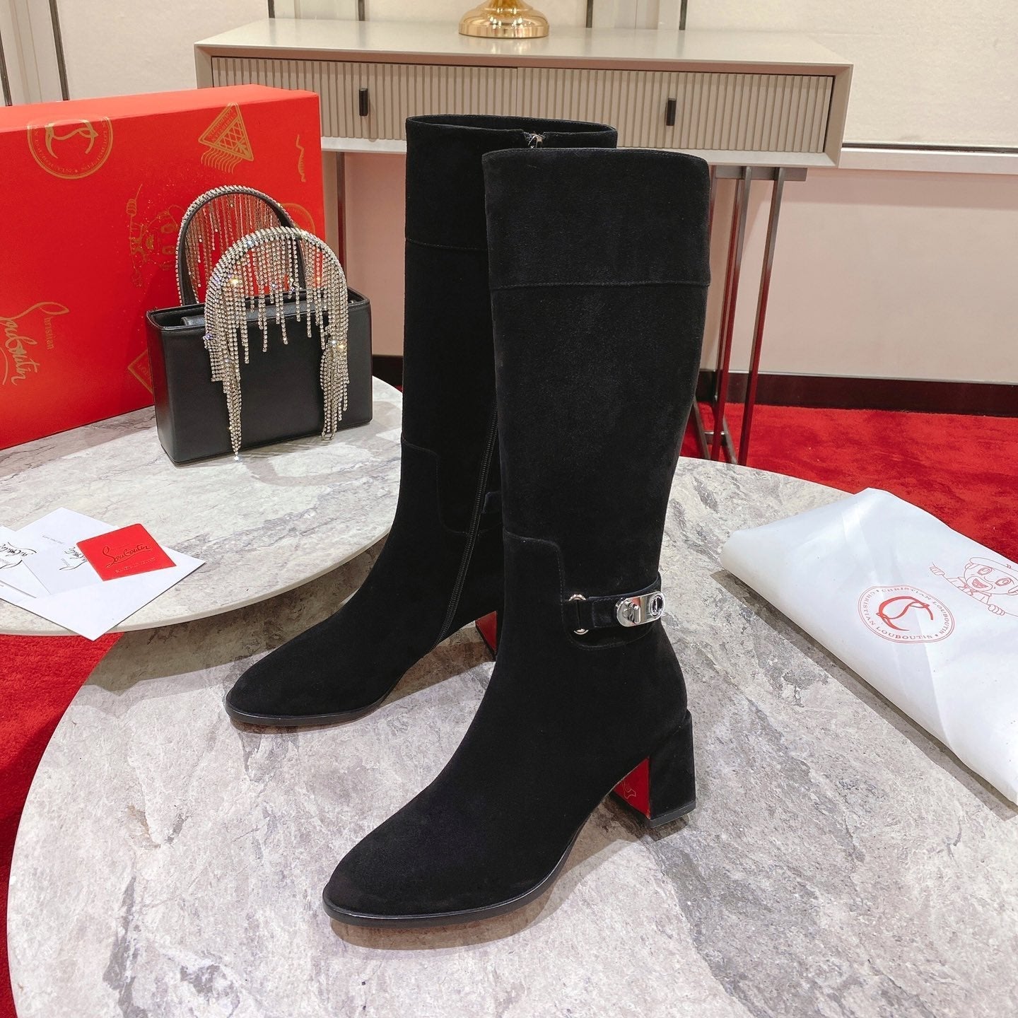 CL Lock Botta 70 mm Knee-High Boots Suede Black