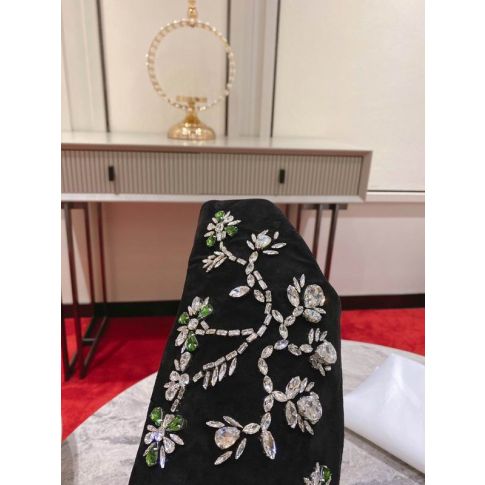 CL Morgan Fleur Knee High Boots Velvet with Crystals Black