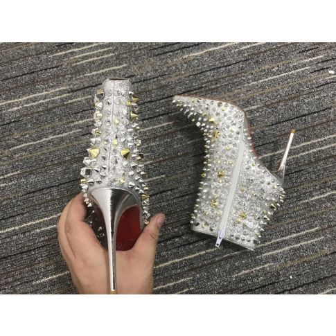 CL So Full Kate 100mm Ankle Boots Specchio Glitte Silver
