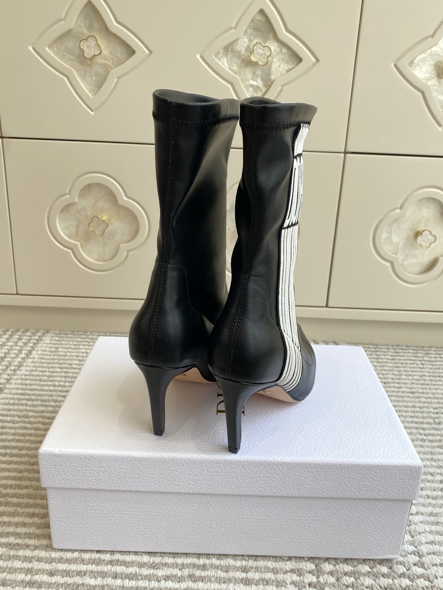 Dior 2025 Tribales Heeled Ankle Boot 80mm Black White Lambskin 501196