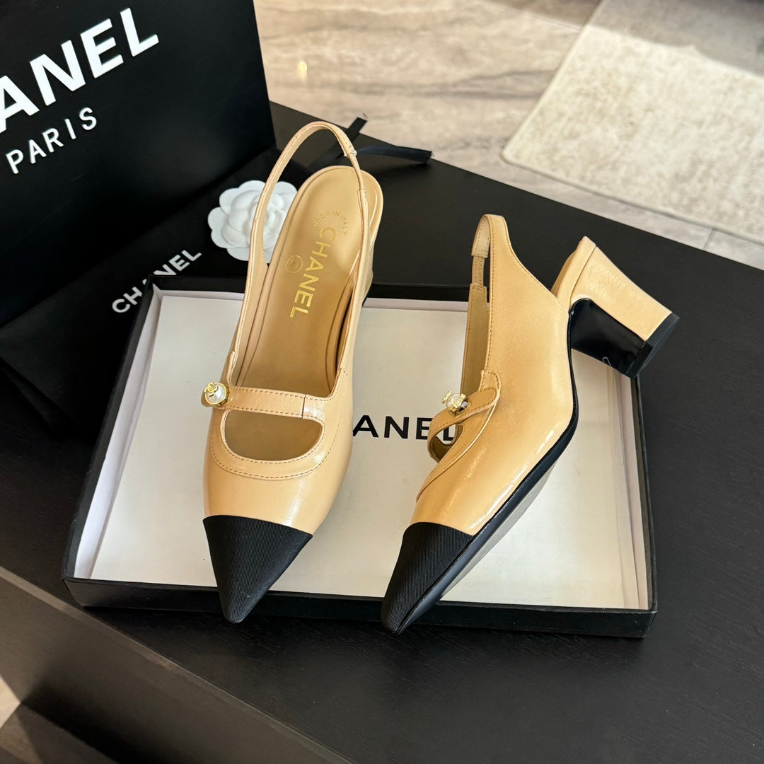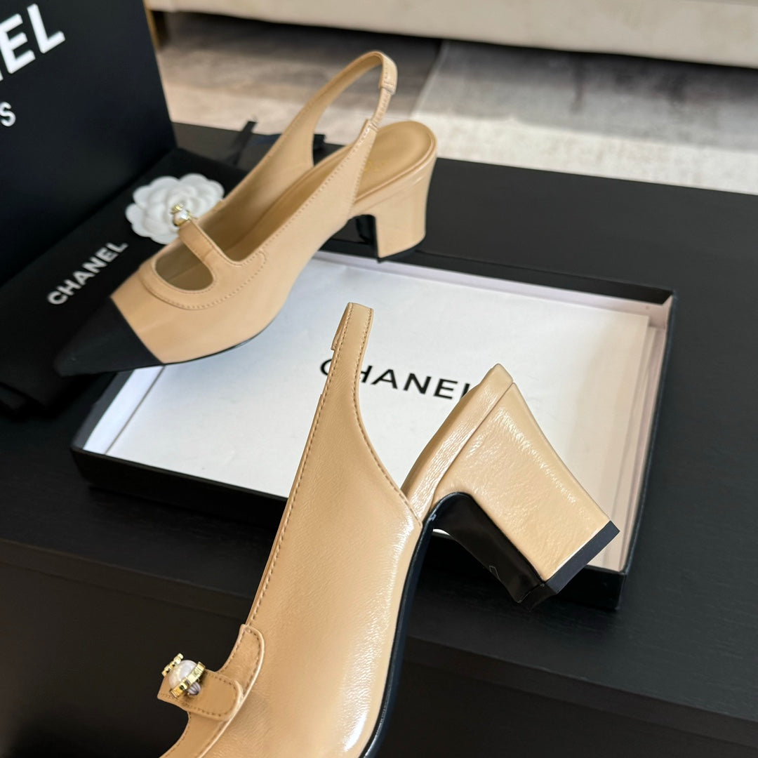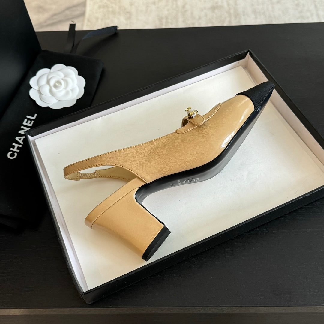 Double C WOMEN'S Slingback SPIRIT TOE Tan brown Lambskin