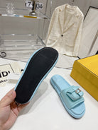 FENDI BAGUETTE SLIPPERS IN SKY BLUE LAMBSKIN WITH GOLD HARDWARE