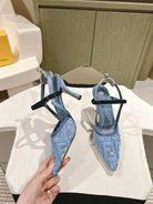 FENDI COLIBRÌ HIGH-HEELED SLINGBACKS 75MM IN SKY BLUE FABRIC