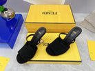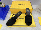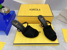 FENDI FIRST 95 MM HIGH-HEELED SANDAL IN BLACK SUEDE GOLD HARDWARE