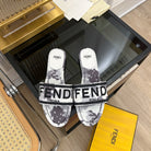 FENDI FLORAL SLIDES IN BLACK MIX WHITE FABRIC