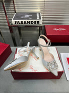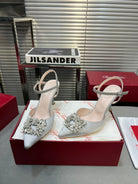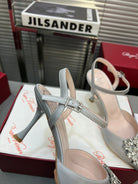 Flower Strass Buckle Slingback Pump 90 Grey Satin