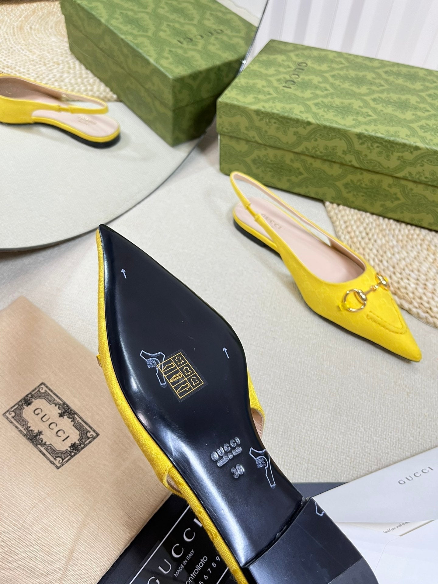 GC Horsebit Slingback Pump 10mm Yellow Canvas Sheepskin 294541