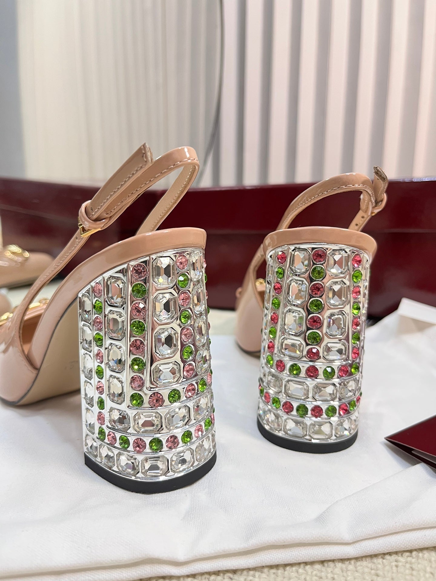 GC Horsebit Slingback with Crystal 95mm Rose Beige Patent Leather 294597