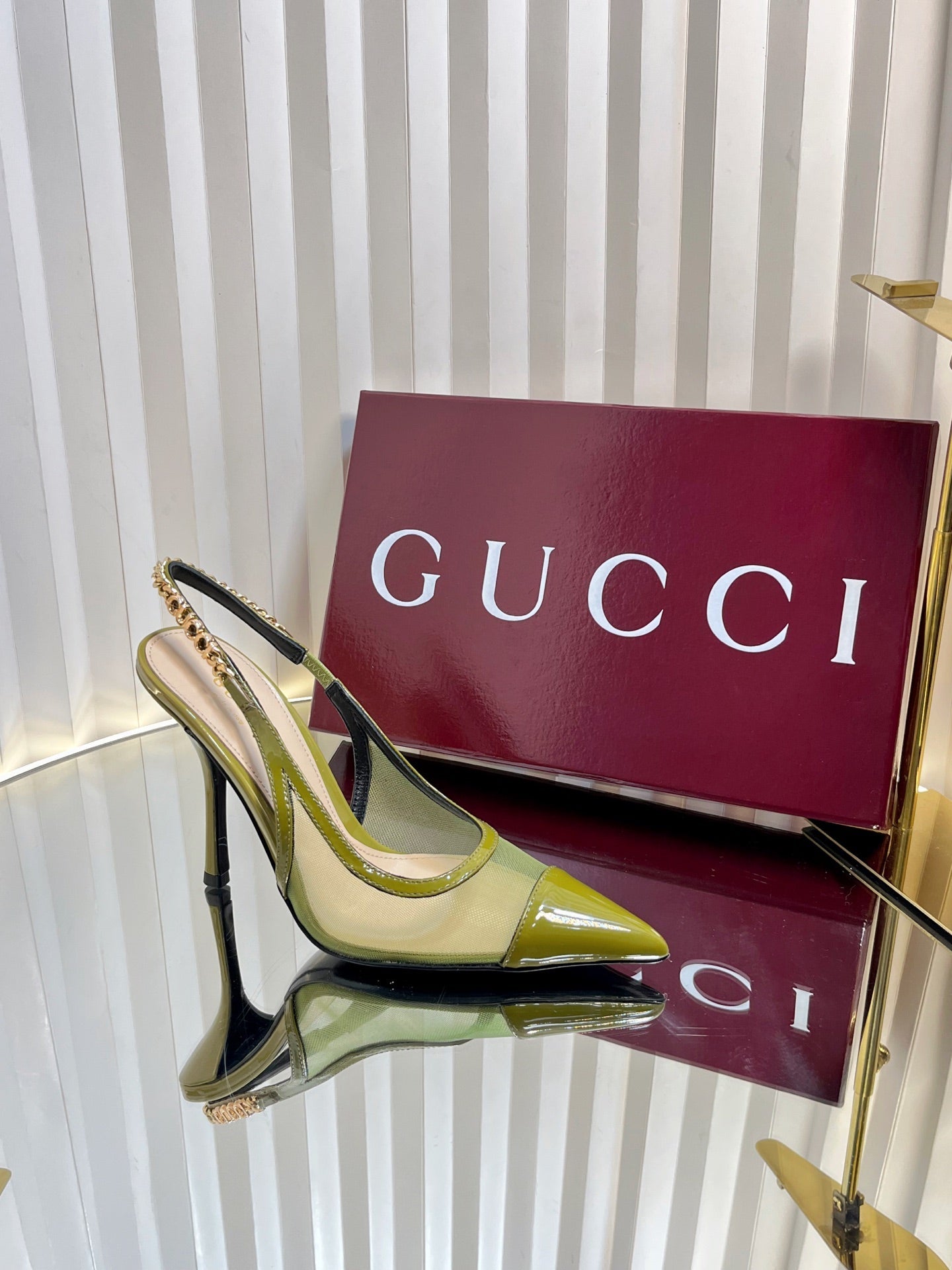 GC Signoria Slingback Pump Avocado Green Mesh Sheepskin 294522