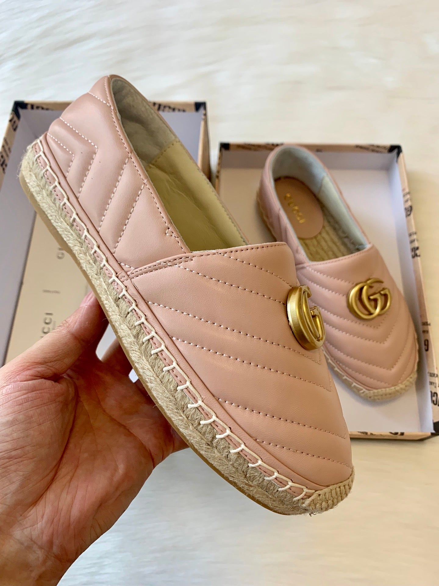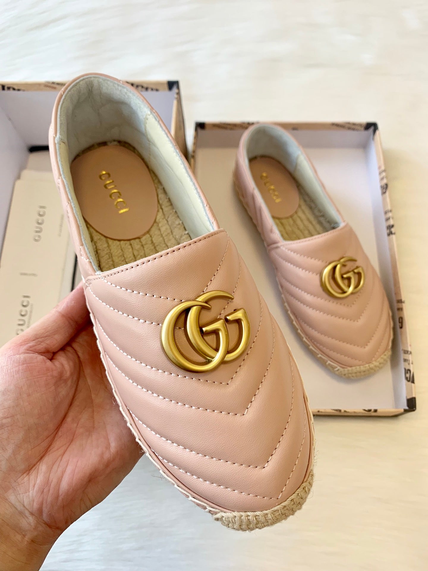 gg espadrilles powder pink calfskin