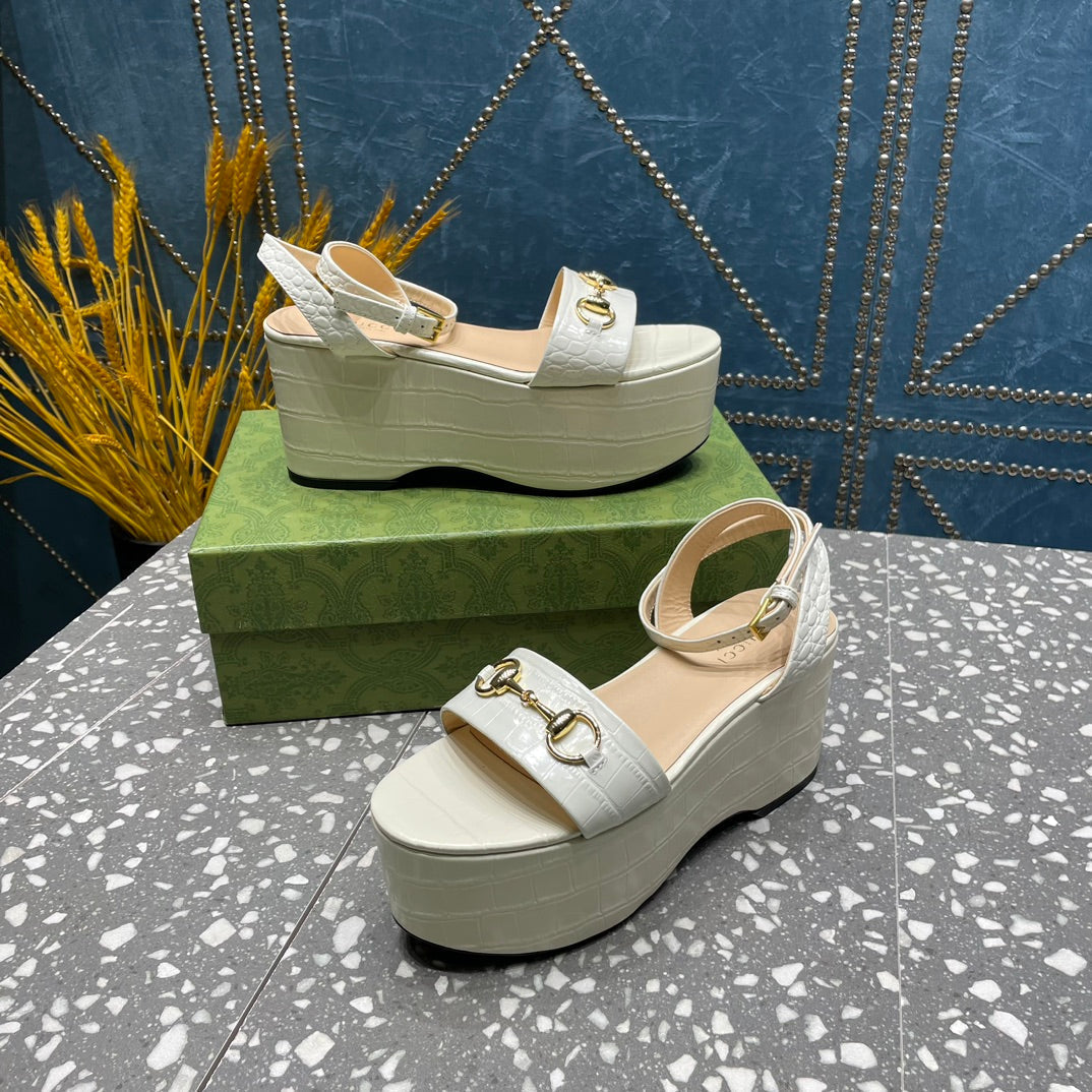 GG HORSEBIT FLATFORM SANDAL GLOSSY WHITE CALFSKIN