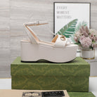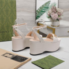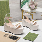GG Horsebit Wedges Sandals White