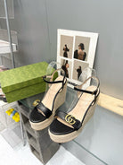 gg marmont sandal 140mm espadrilles black leather
