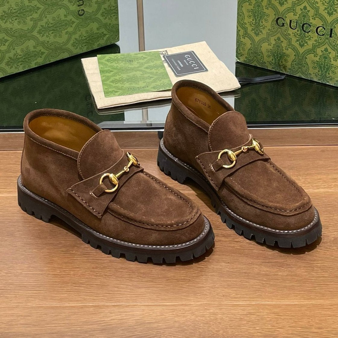 GG WOMEN'S HORSEBIT ANKLE BOOT IN DARK BROWN SUEDE