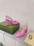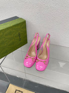 GG WOMEN'S HORSEBIT SLINGBACK 95MM IN FUSICA PINK CALFSKIN