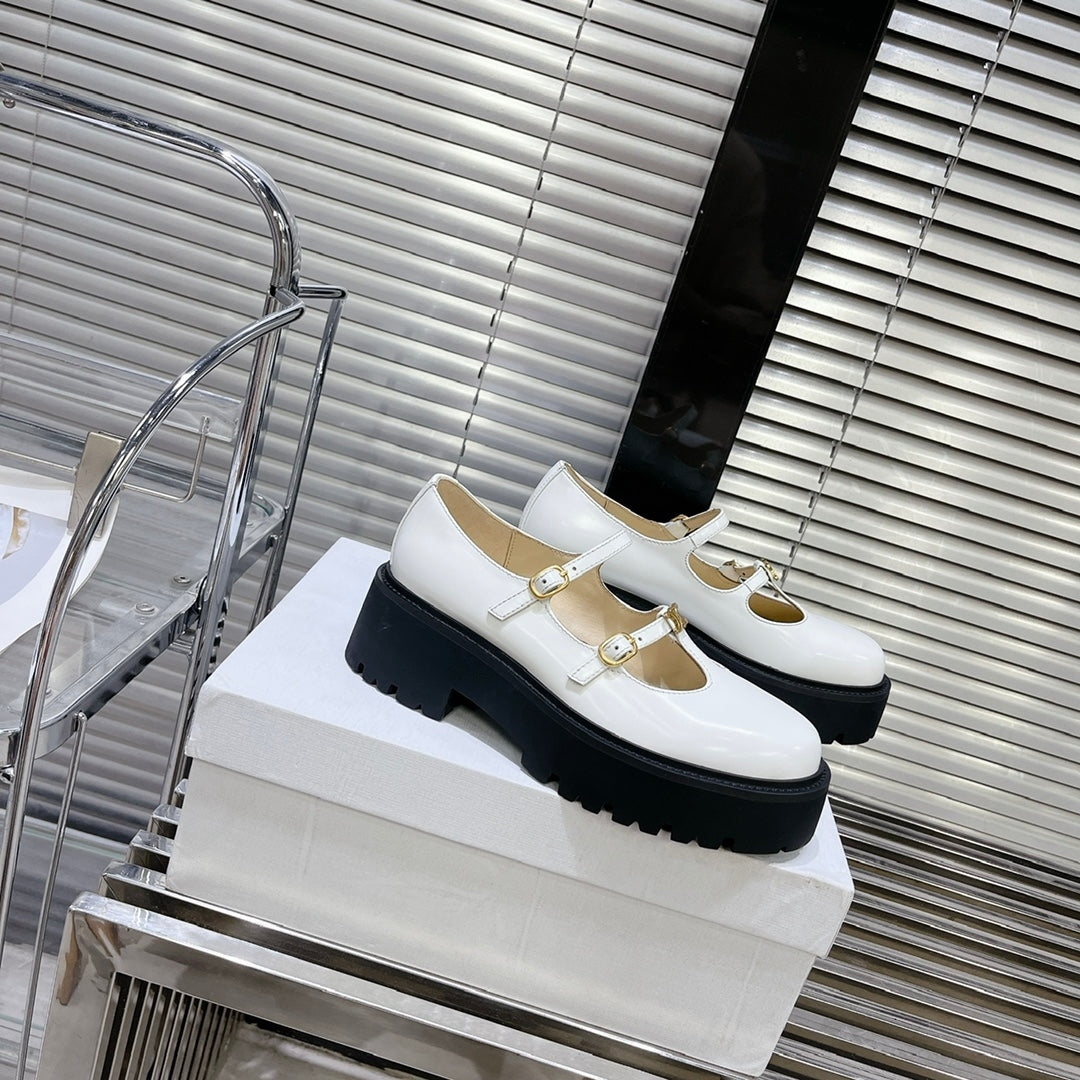 HIGH FLAT SANDALS WITH DOUBLE STRAP-DESIGN LEATHER WHITE