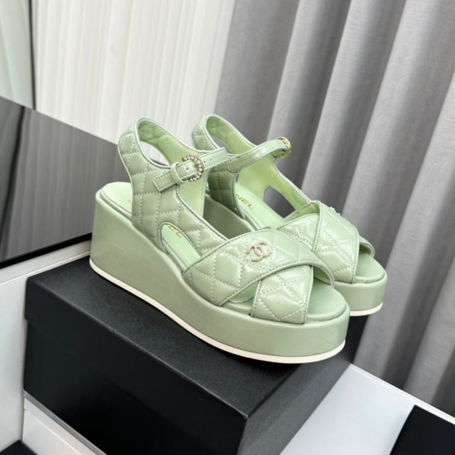 high heel sandals light green quilted lambskin 95