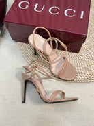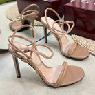 HIGH SANDAL 10 CM IN TAN BEIGE GLOSSY CALFSKIN