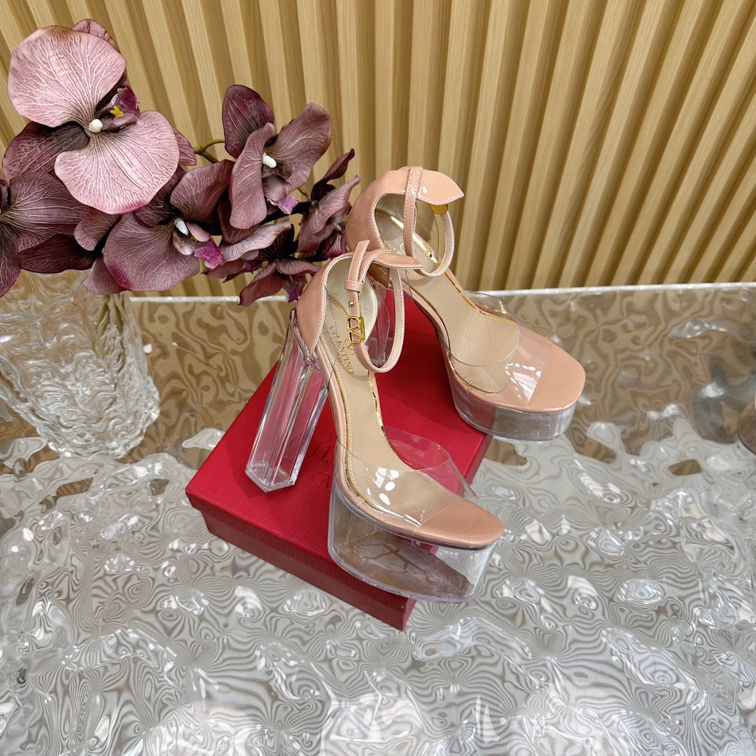 HIGH SANDAL 14CM IN NUDE TAN CALFSKIN AND TRANSPARENT PVC