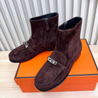 HM 25 Kelly Buckle Ankle Boots Dark Brown Silver Suede 513081