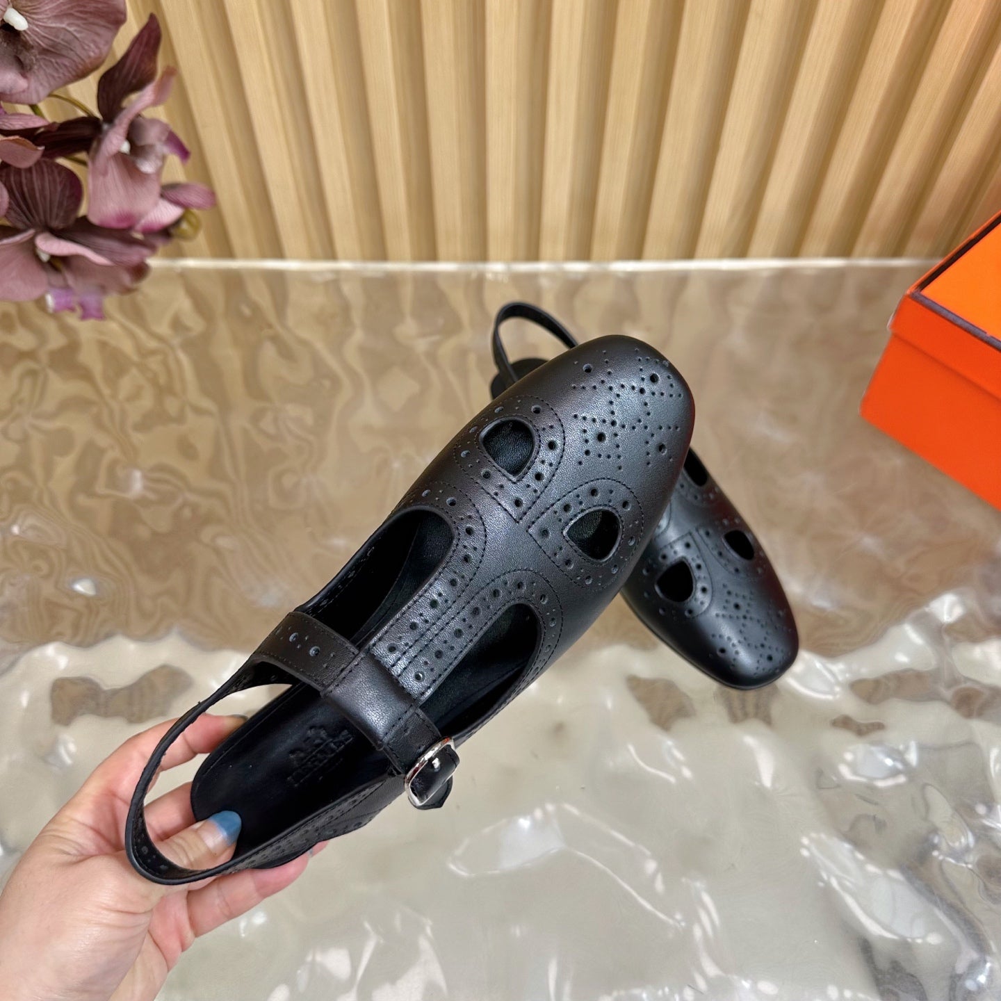 HM 25 Kim Slingback Black Lambskin 352959