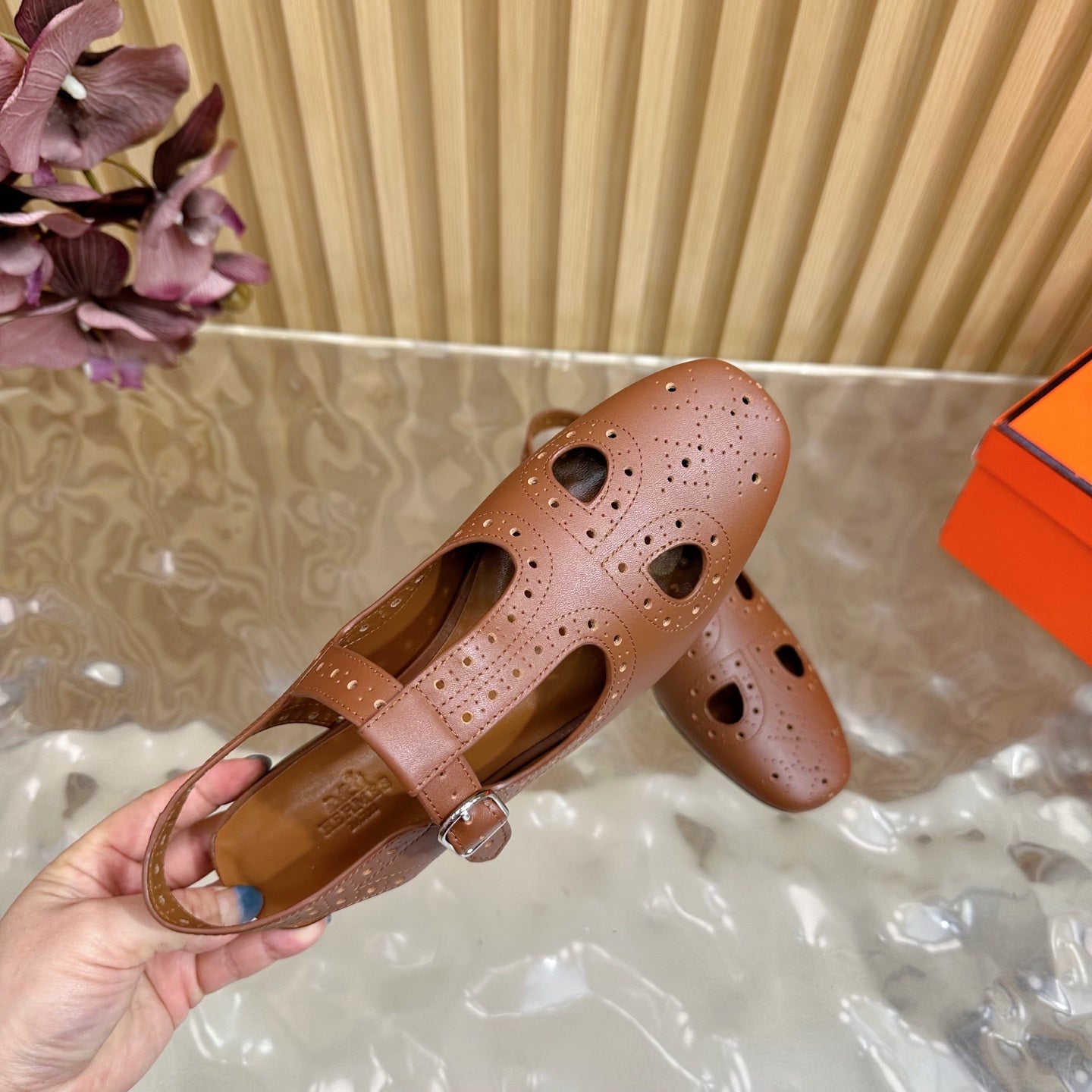 HM 25 Kim Slingback Brown Lambskin 352958