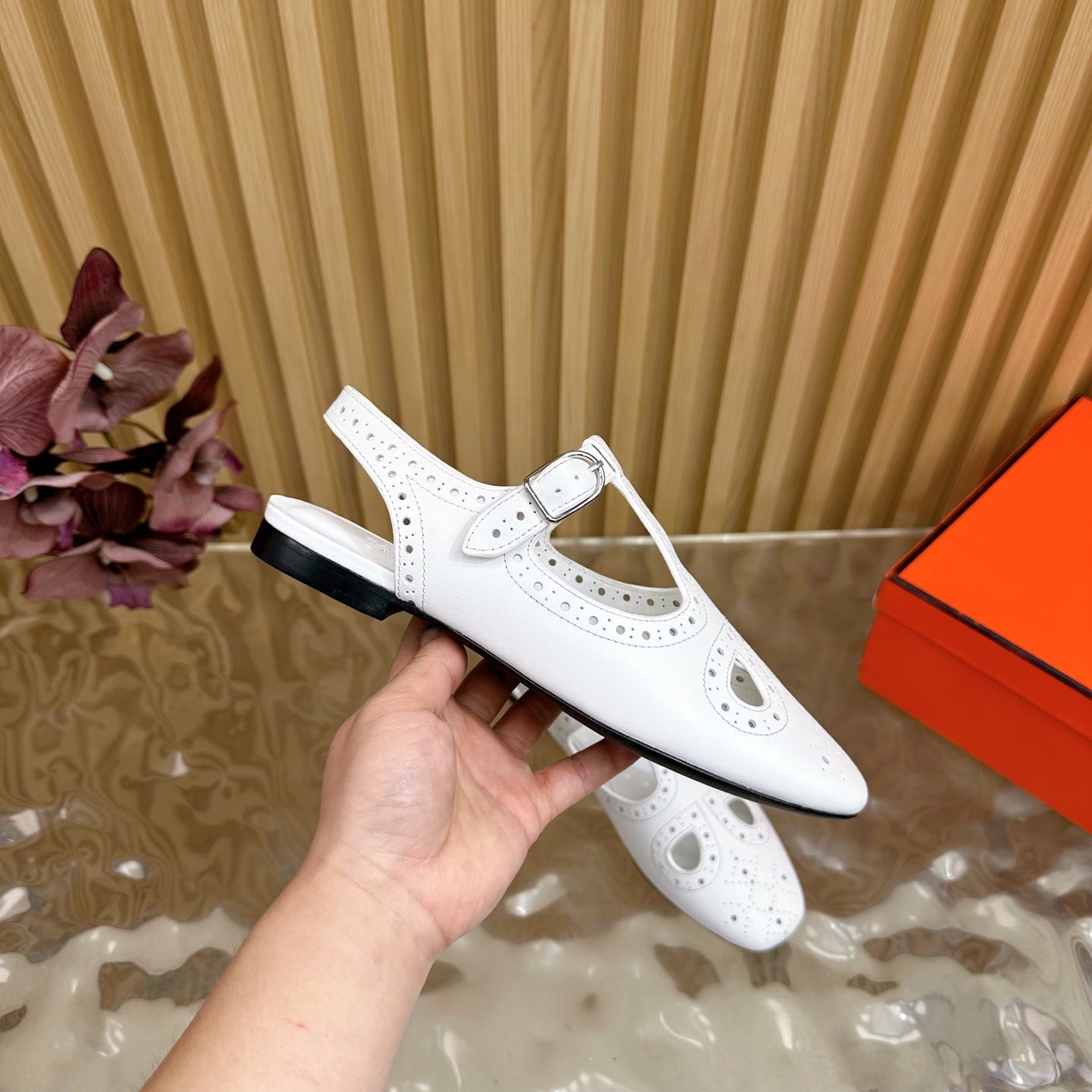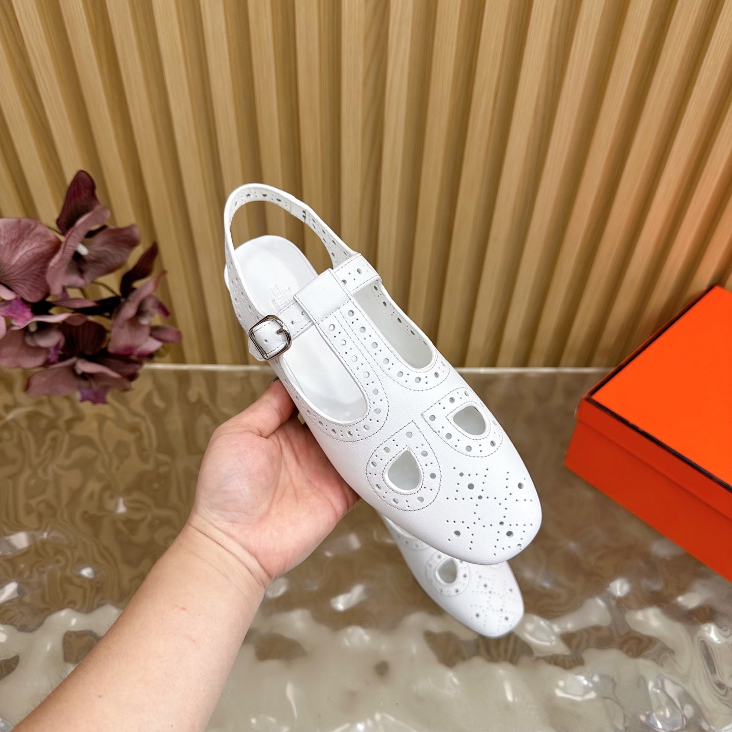 HM 25 Kim Slingback White Lambskin 352957