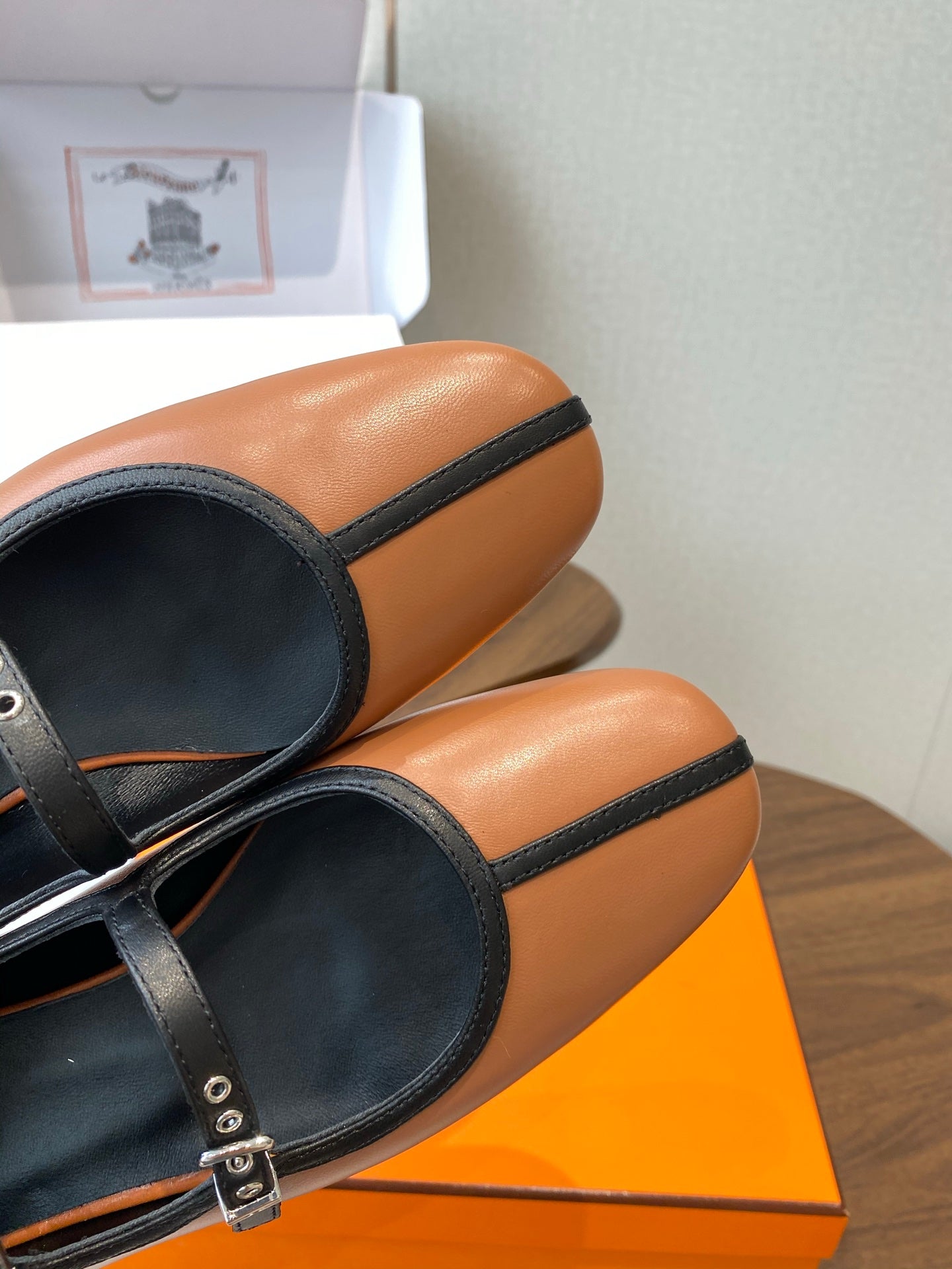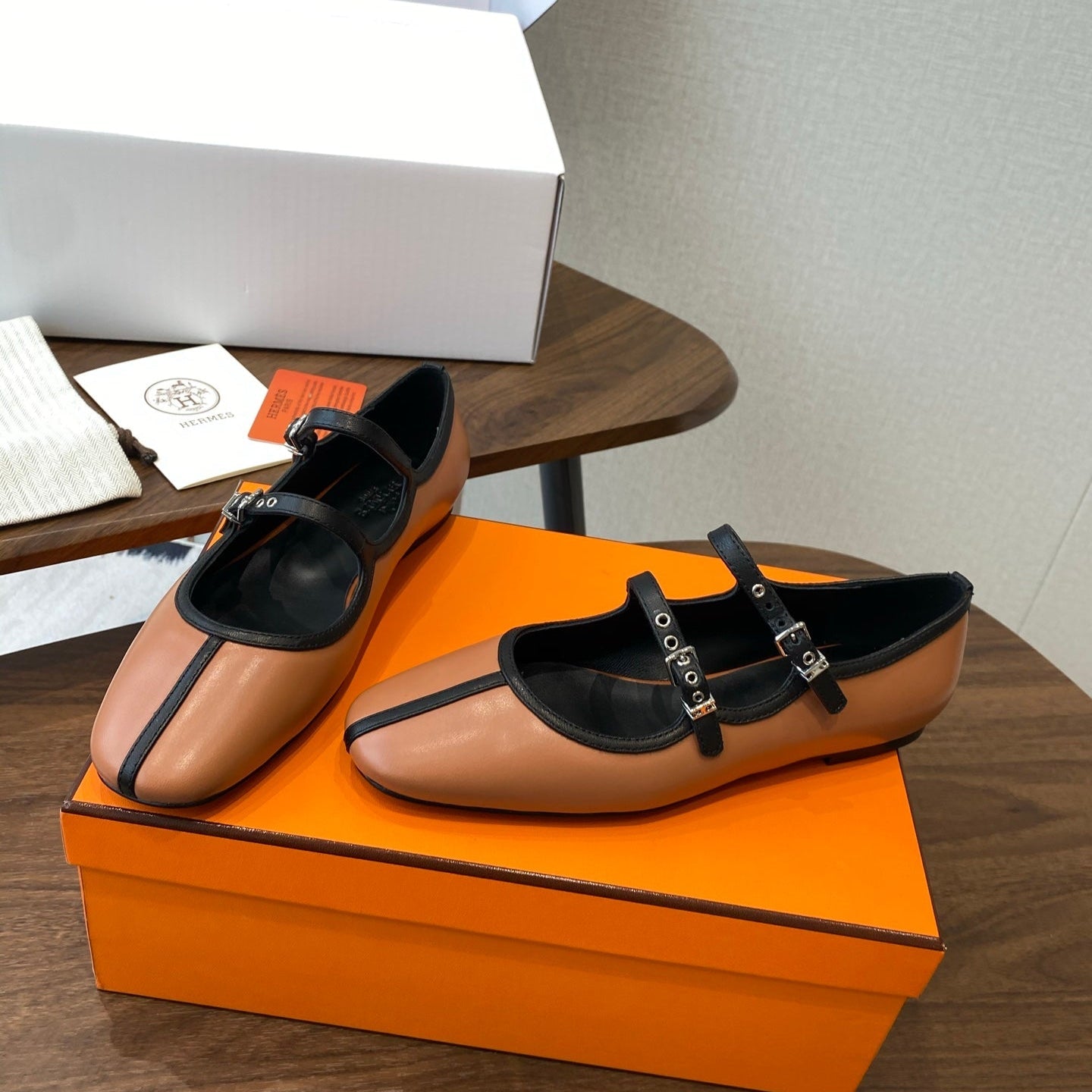HM 25s Mary Jane Double Strap Camel Black Calfskin 422564