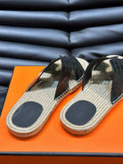 HM ANTIGUA ESPADRILLE SANDAL BLACK CALFSKIN WITH CROCODILE MOTIF
