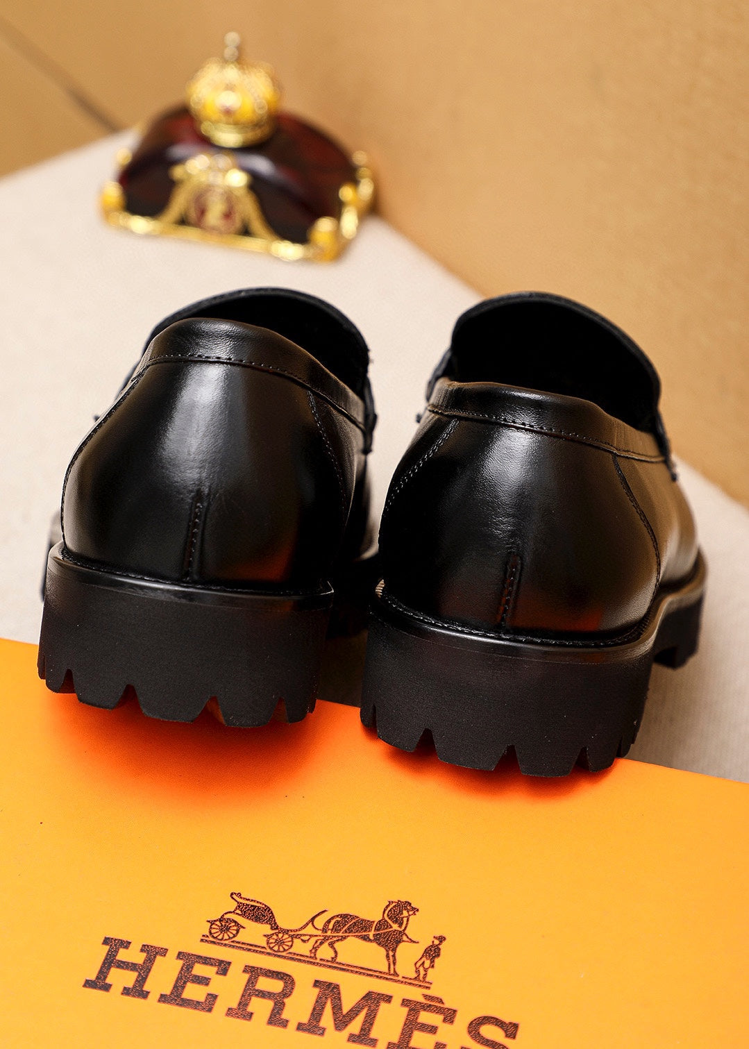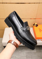 HM GOLD BUCKLE FAUBOURG LOAFER BLACK CALFSKIN