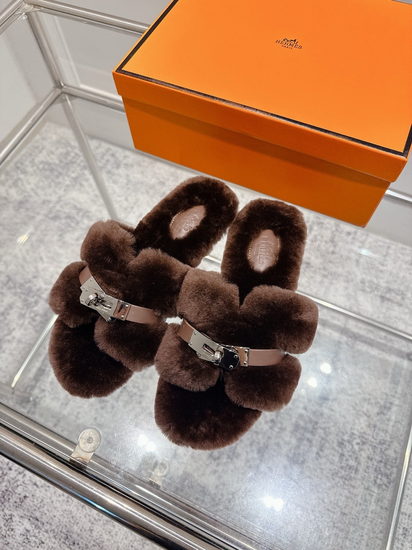 HM Oran slippers sliver buckle dark brown wool