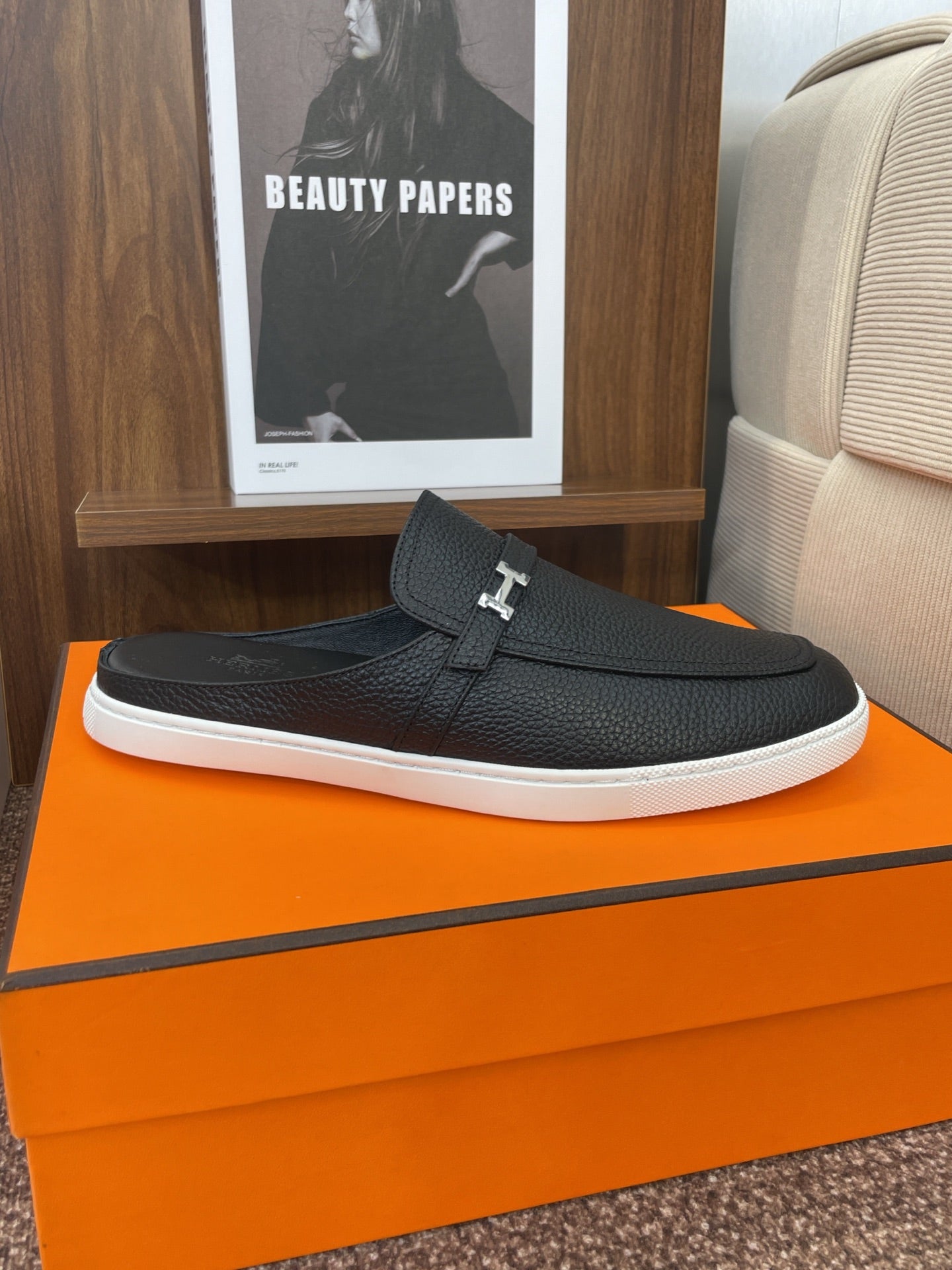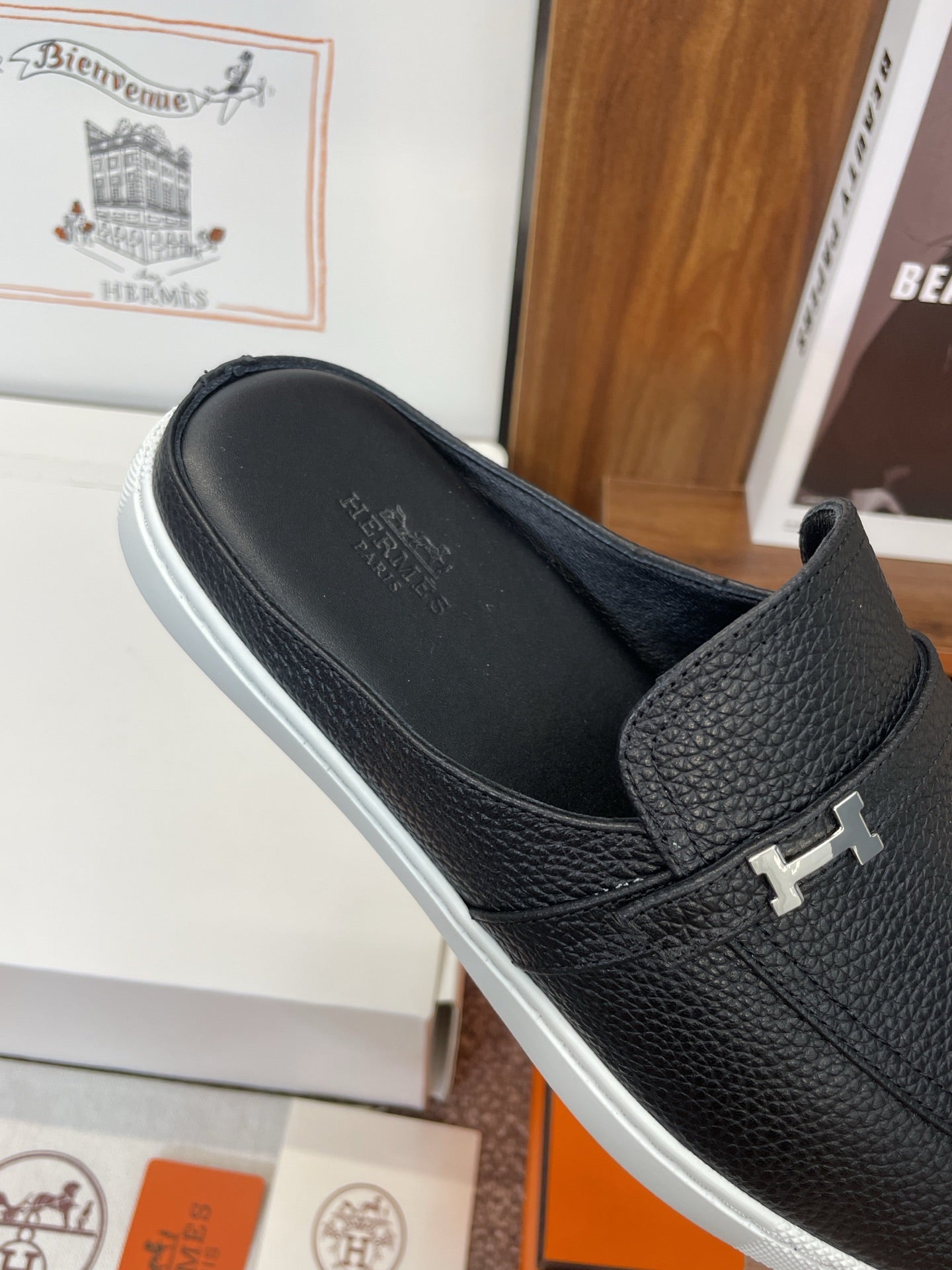 HM OZ Mule Black Calfskin 372938
