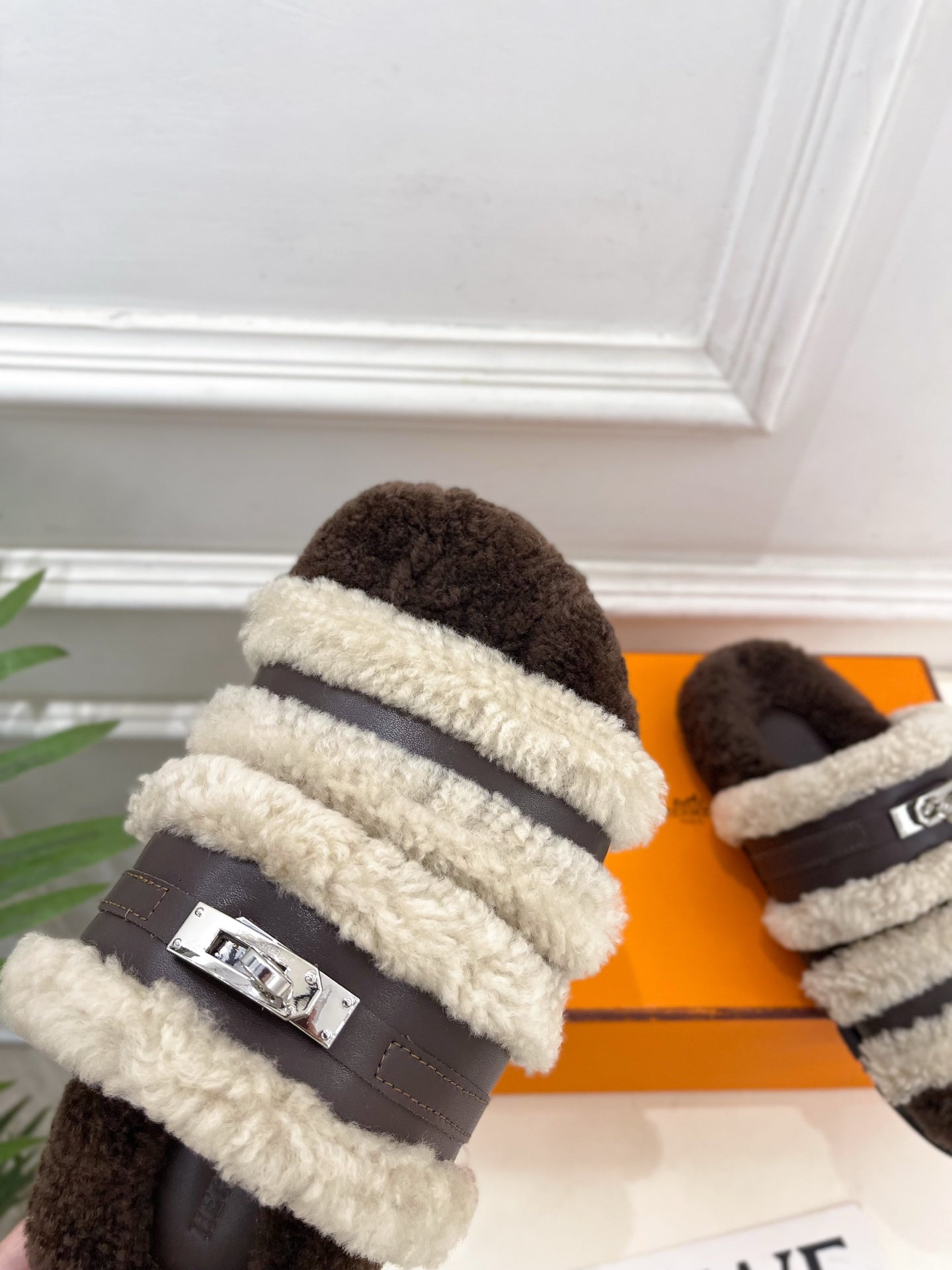 HM Slippers Classic Kelly Sliver Buckle Brown Wool 479616