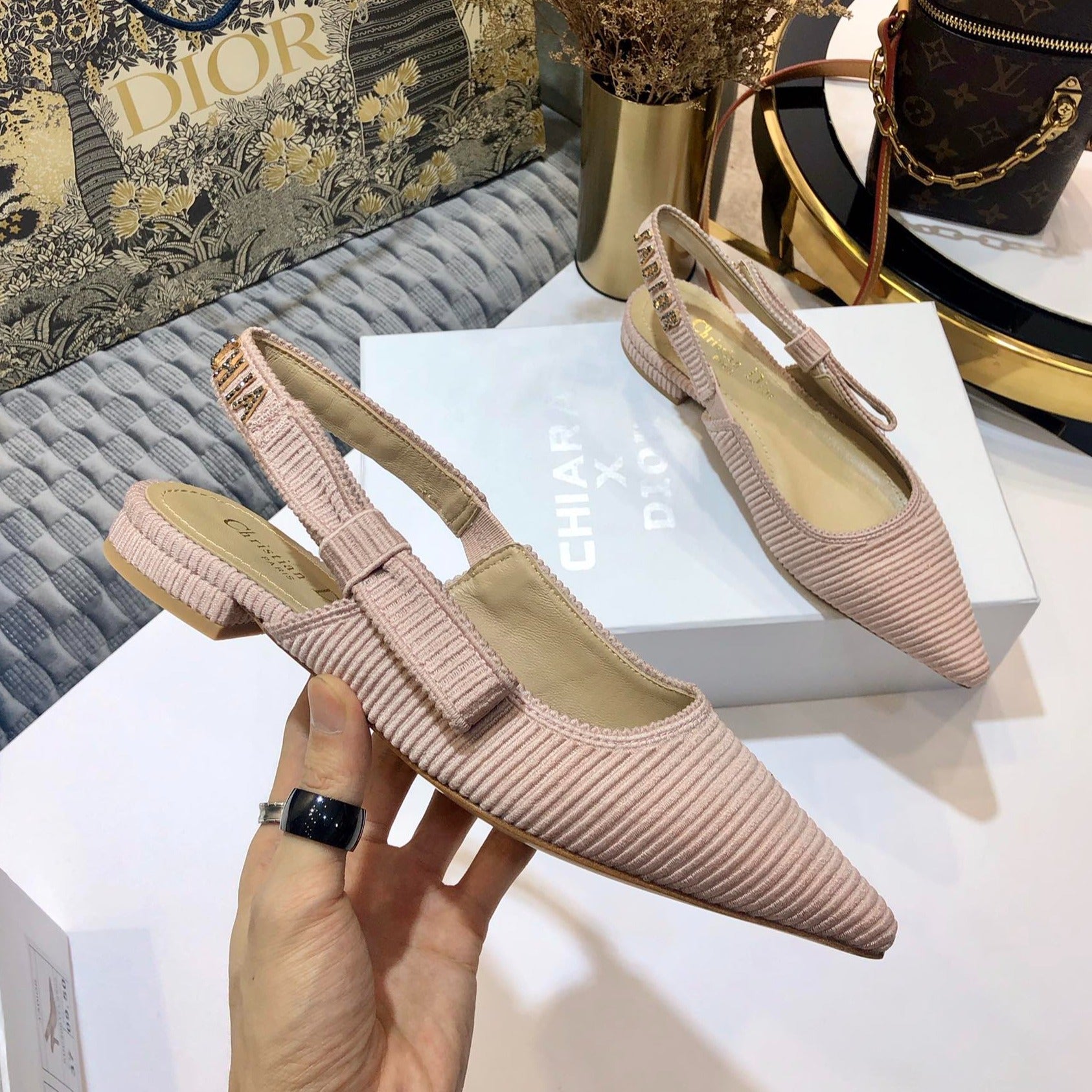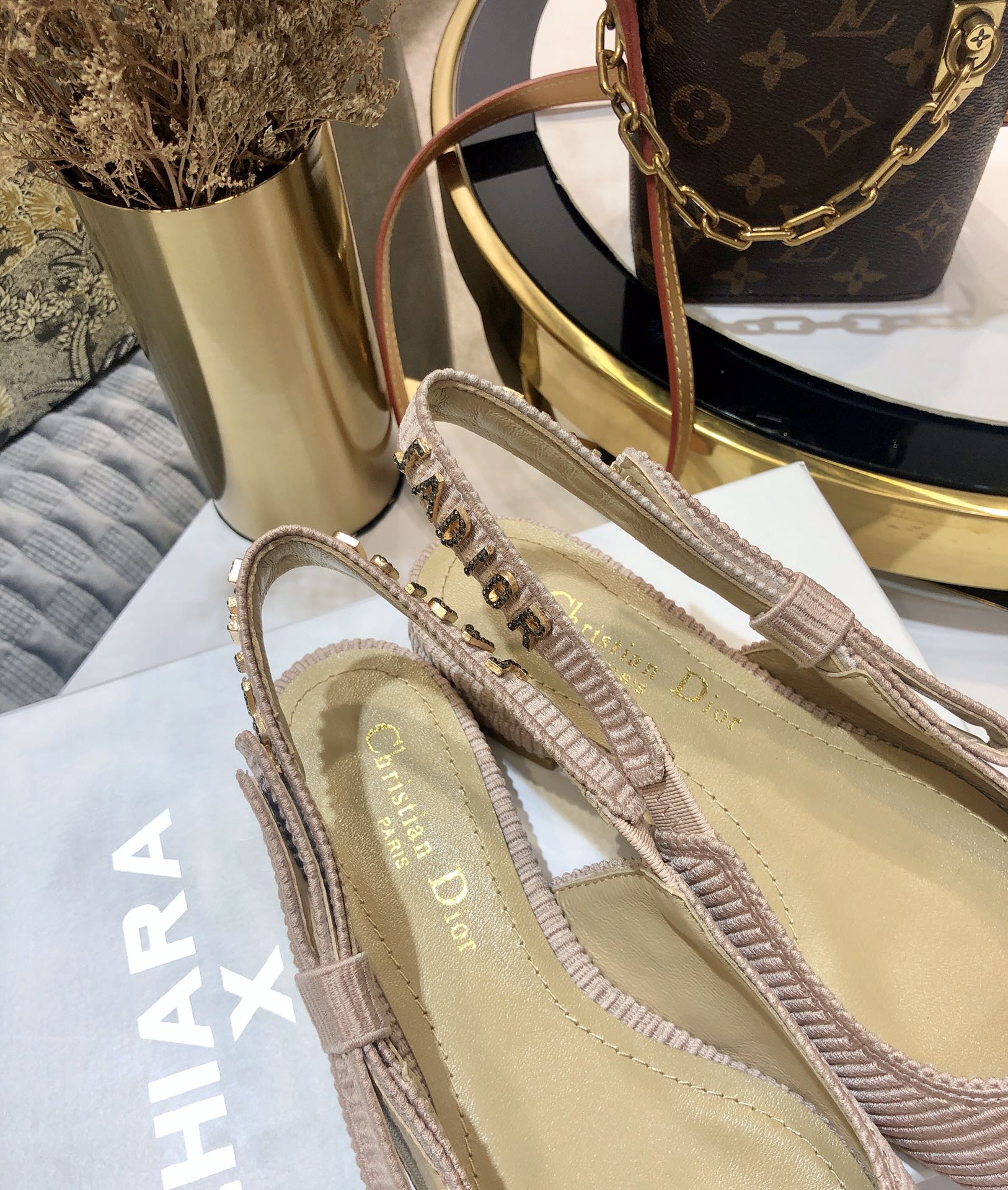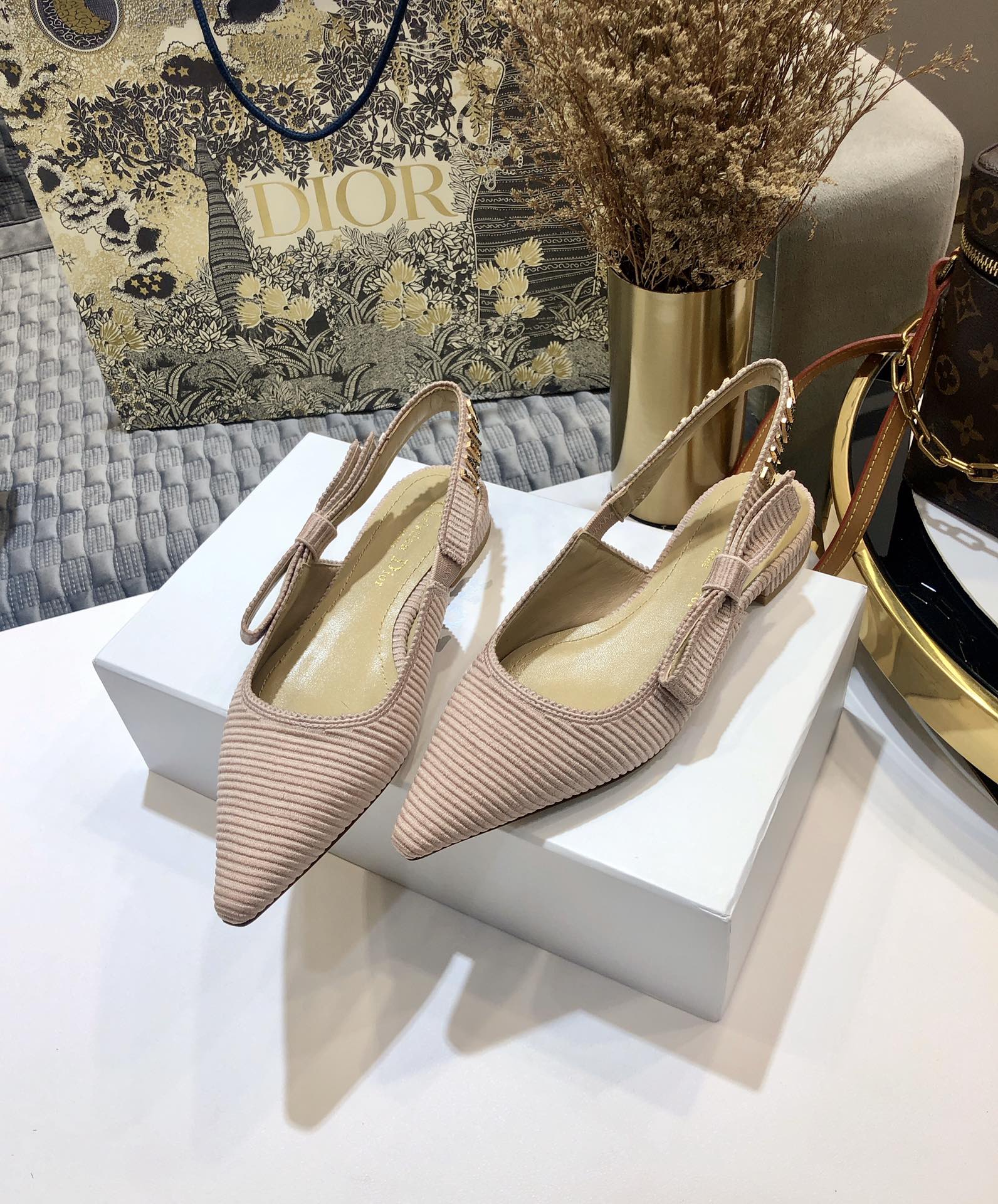 JAdior slingback flat all rose canelle embroidered cotton