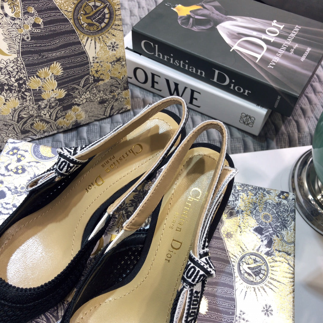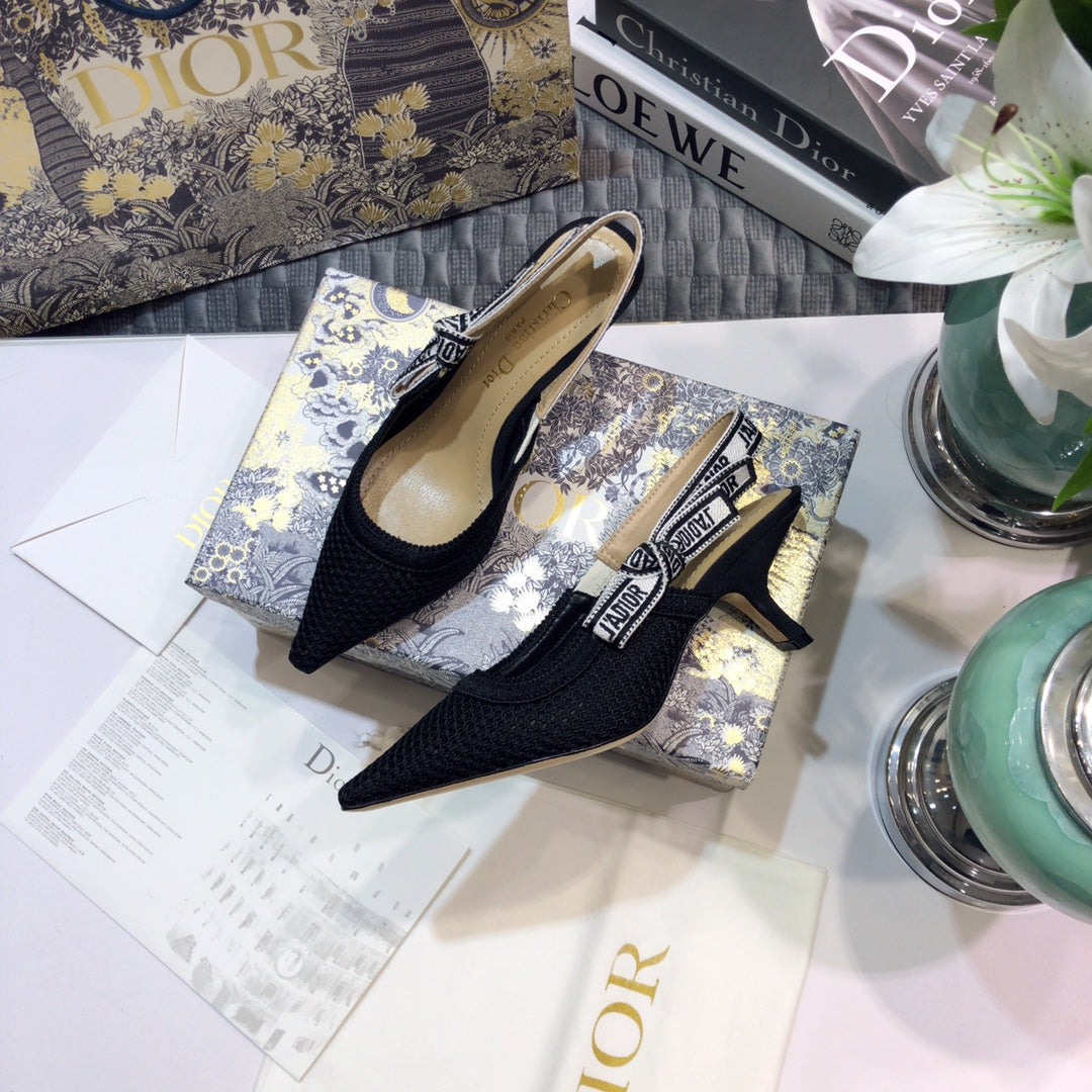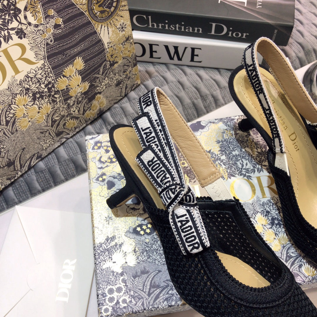 JAdior slingback pumps 65 full transparent mesh black embroidered cotton
