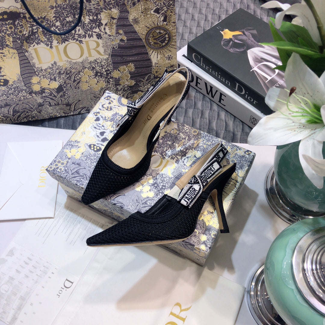 JAdior slingback pumps 95 full transparent mesh black embroidered cotton