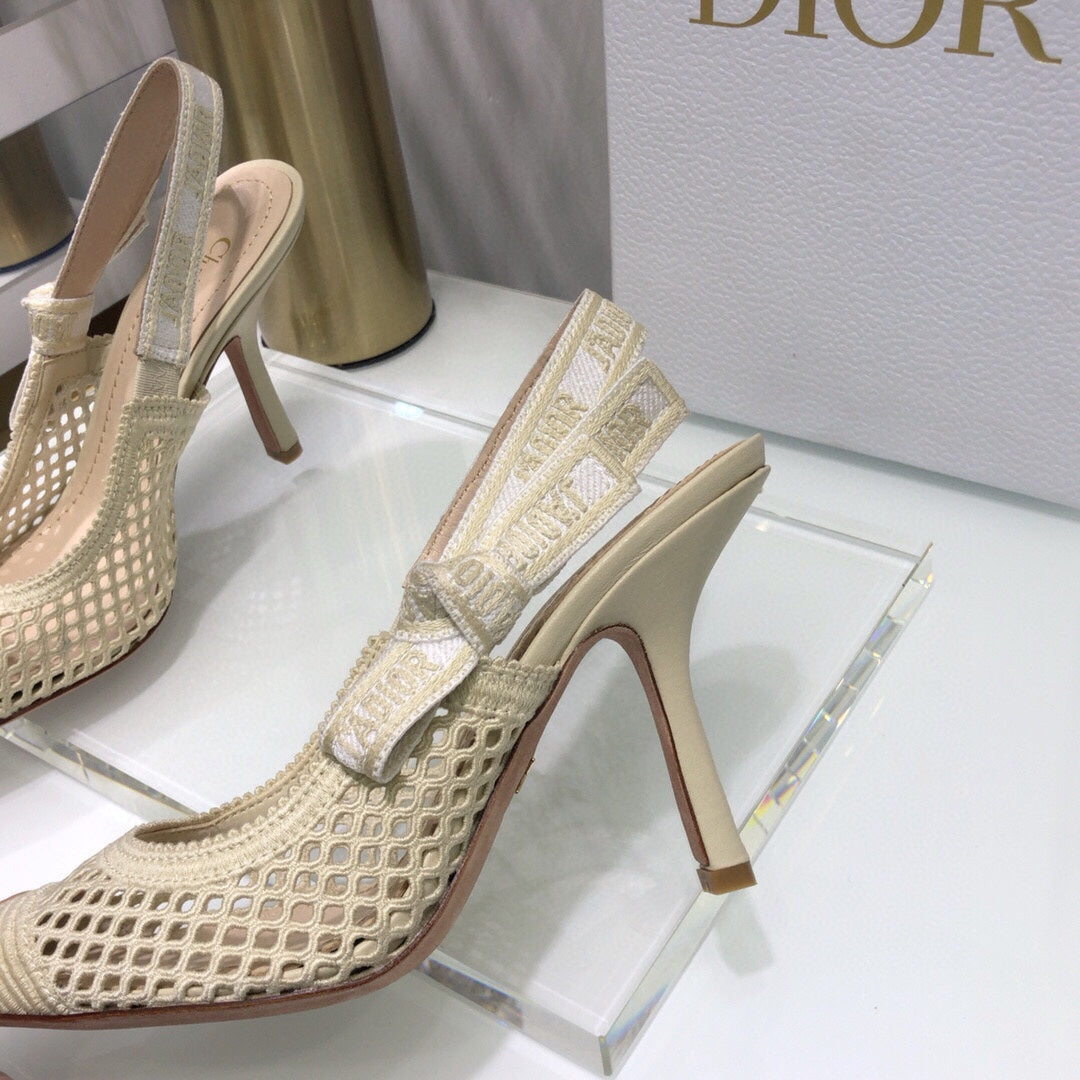 JAdior slingback pumps 95 transparent mesh beige embroidered cotton