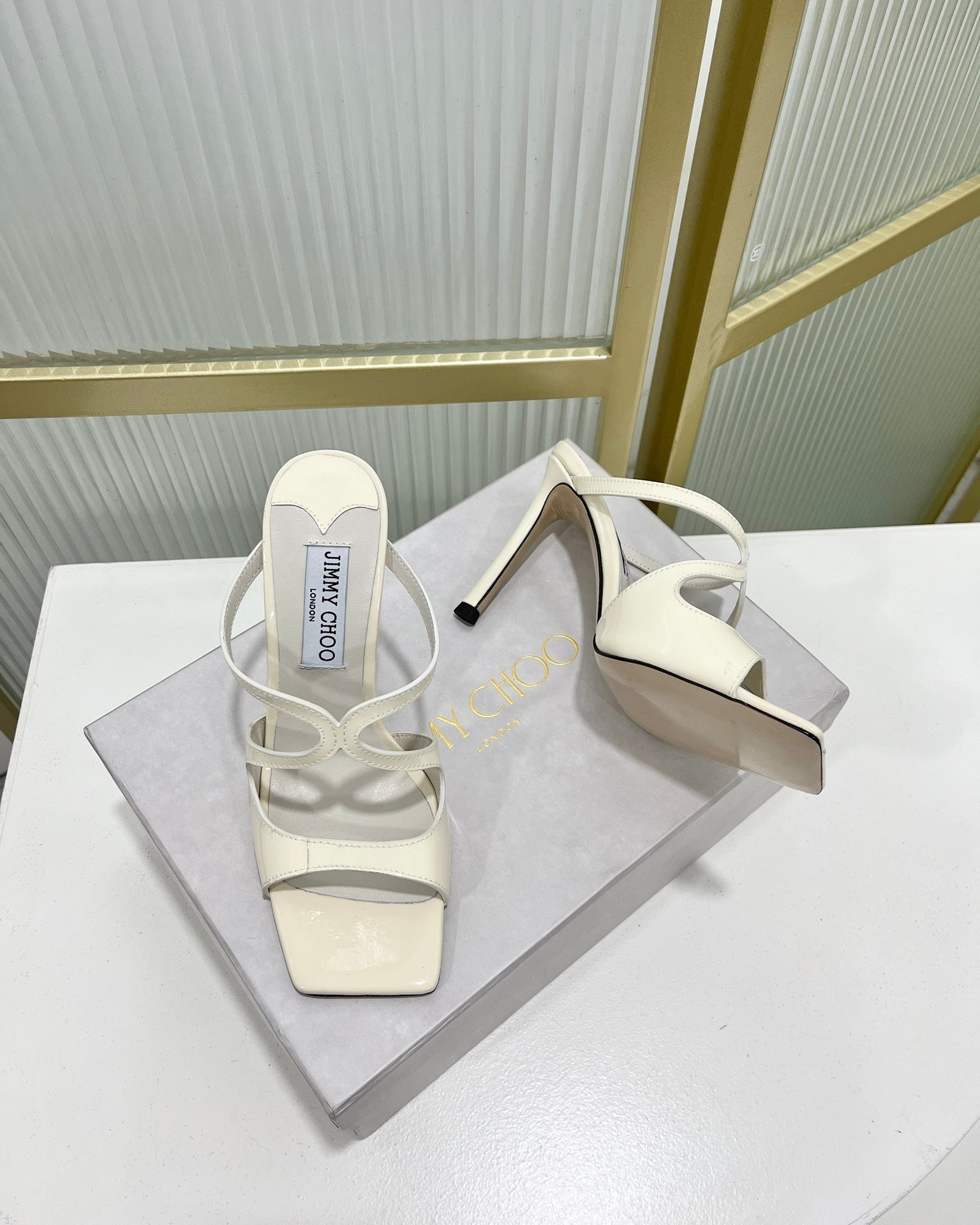 Jimmy Anise 85 In Ivory White Glossy Cowhide Mules 587692