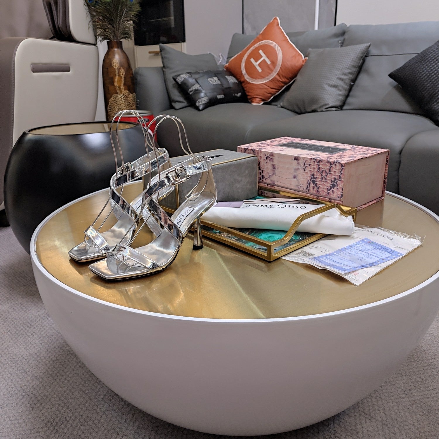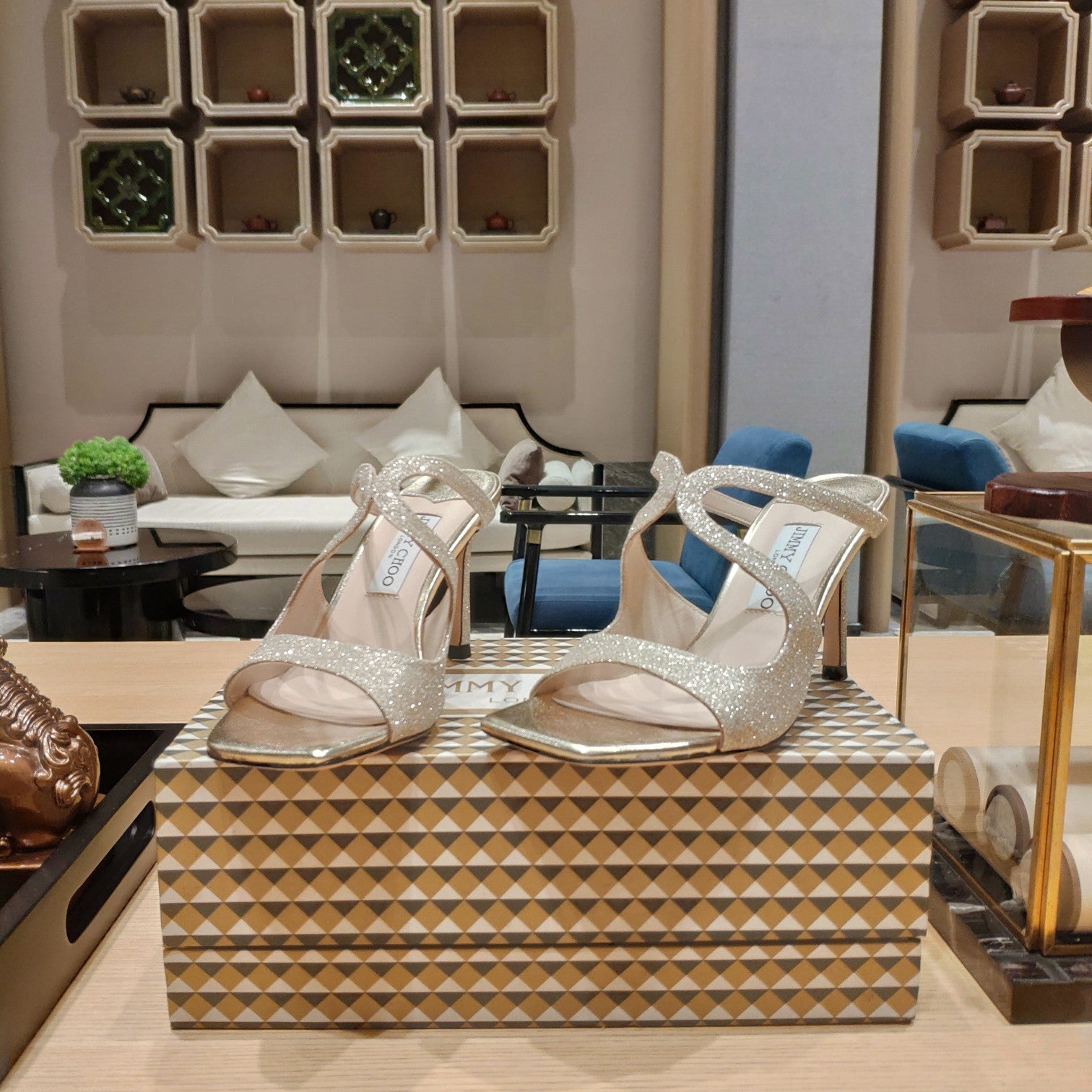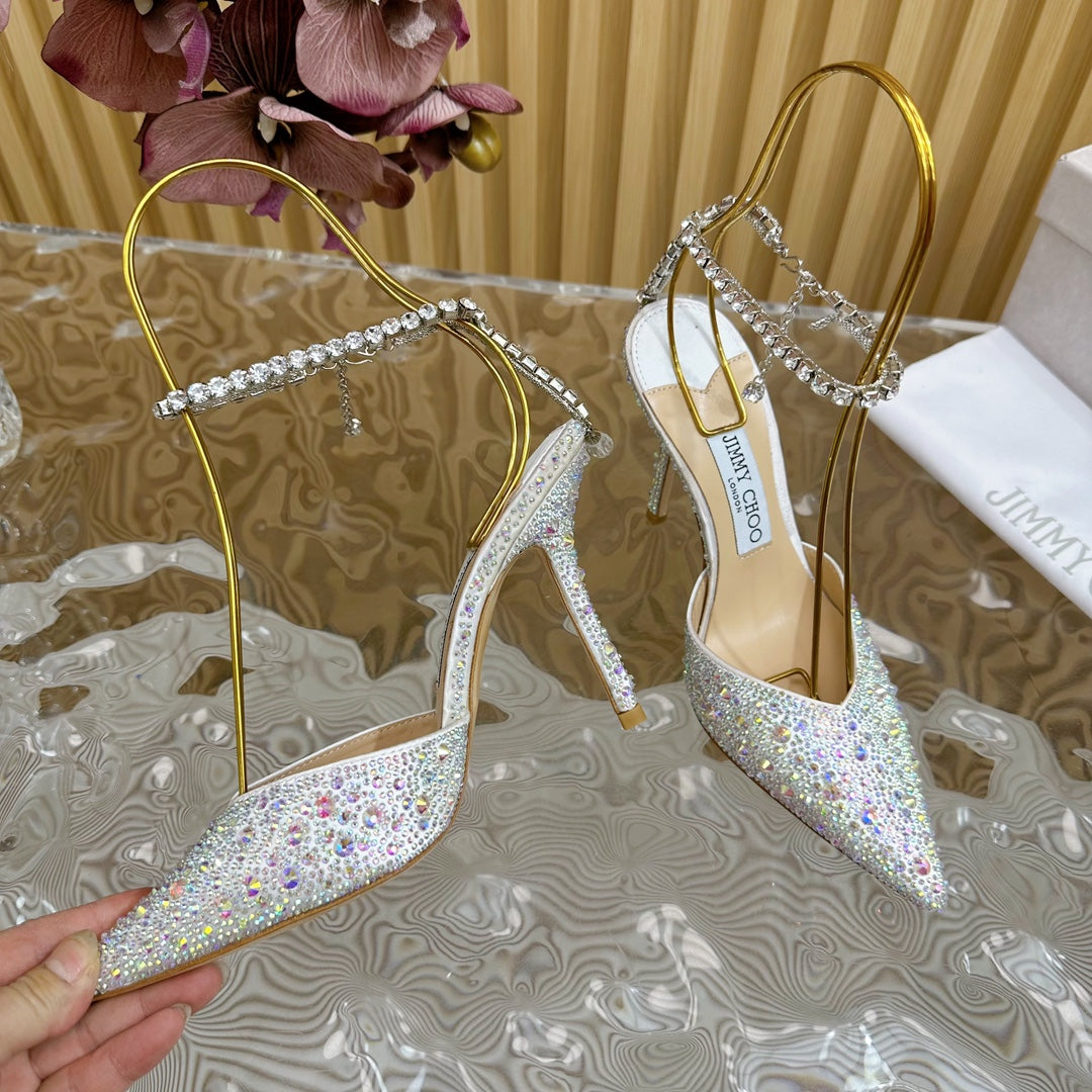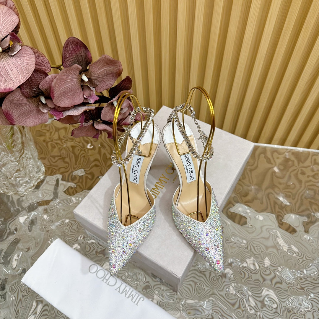 Jimmy Bing 65mm In White Silver Stone Studded Cowhide Mules 593194