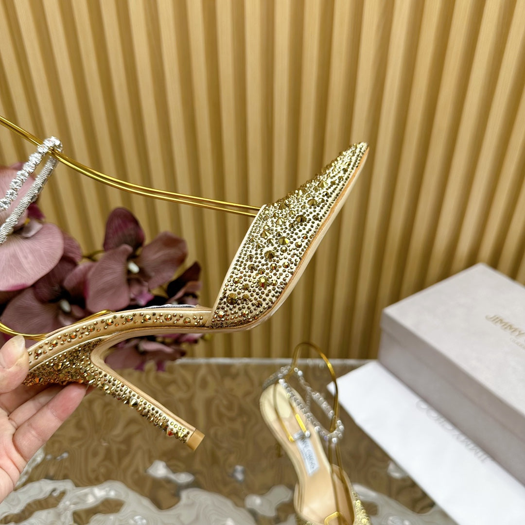 Jimmy Saeda 100mm In Gold Satin Pumps With Crystal Embellishment 641064