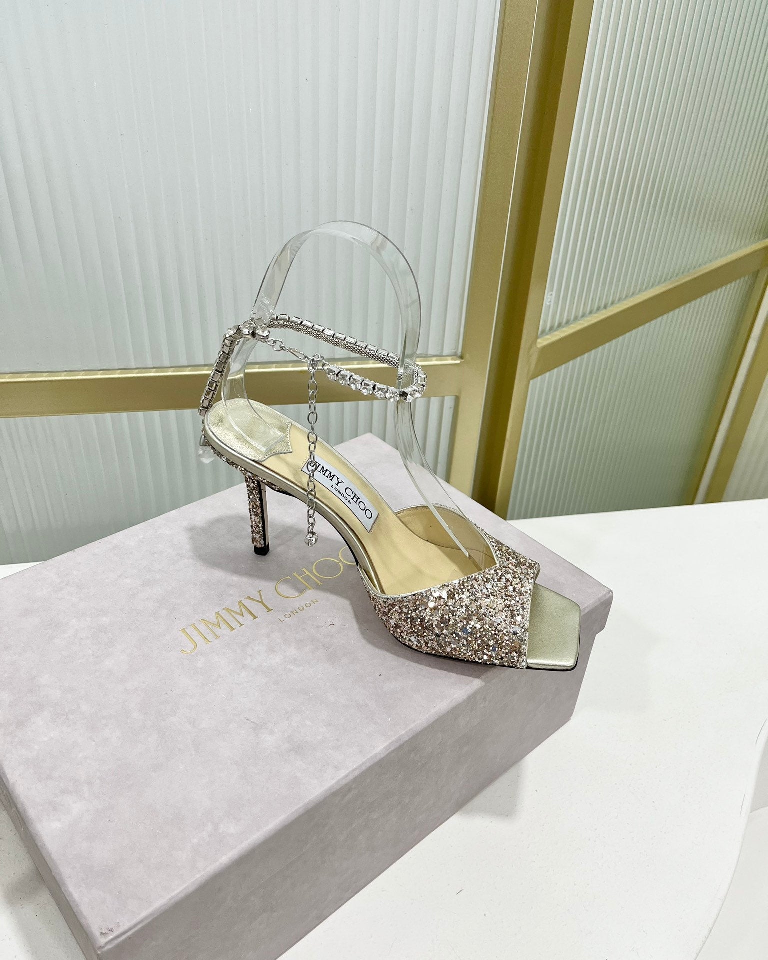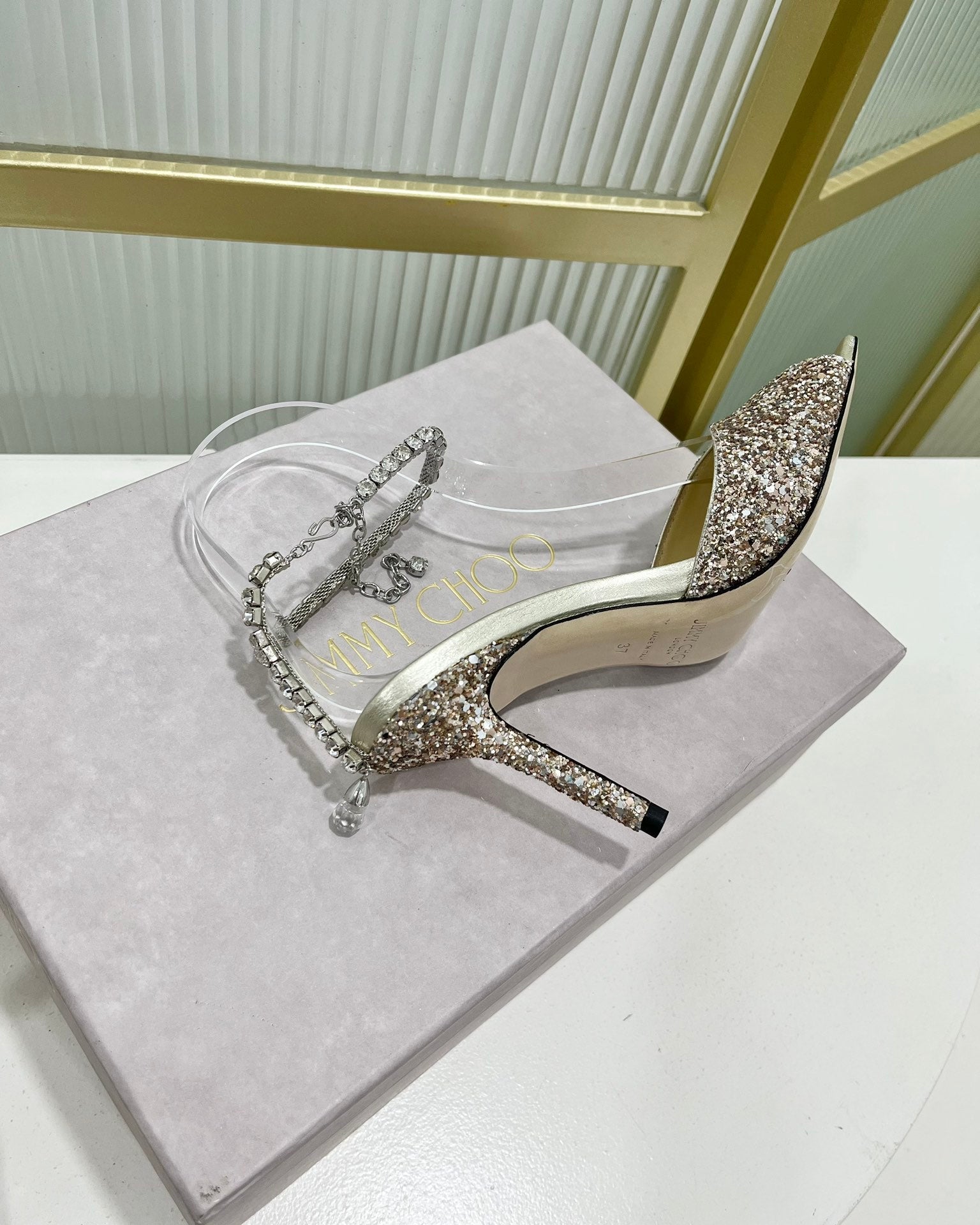 - Material: Satin With Glitt, Crystal/Lambskin
