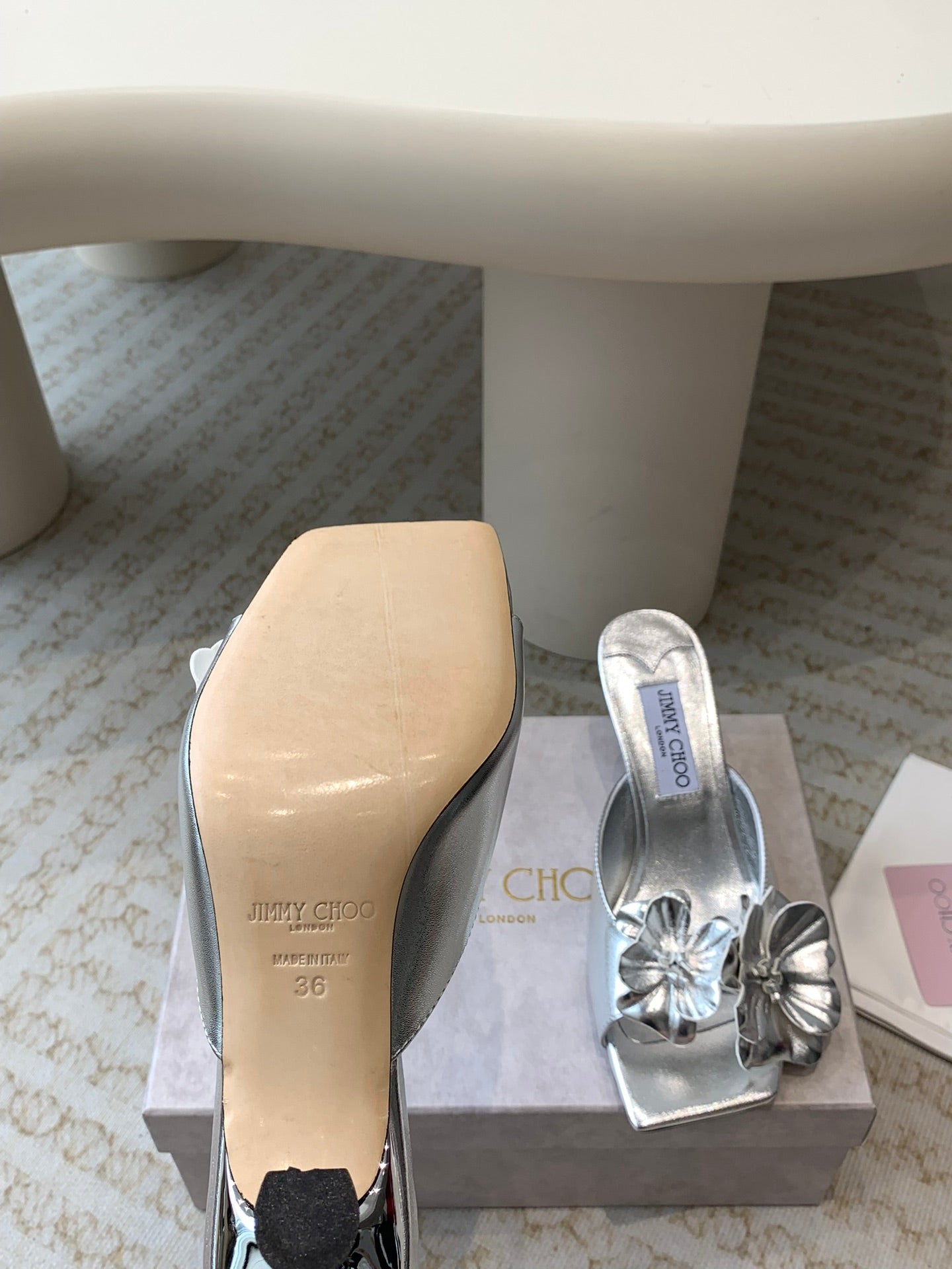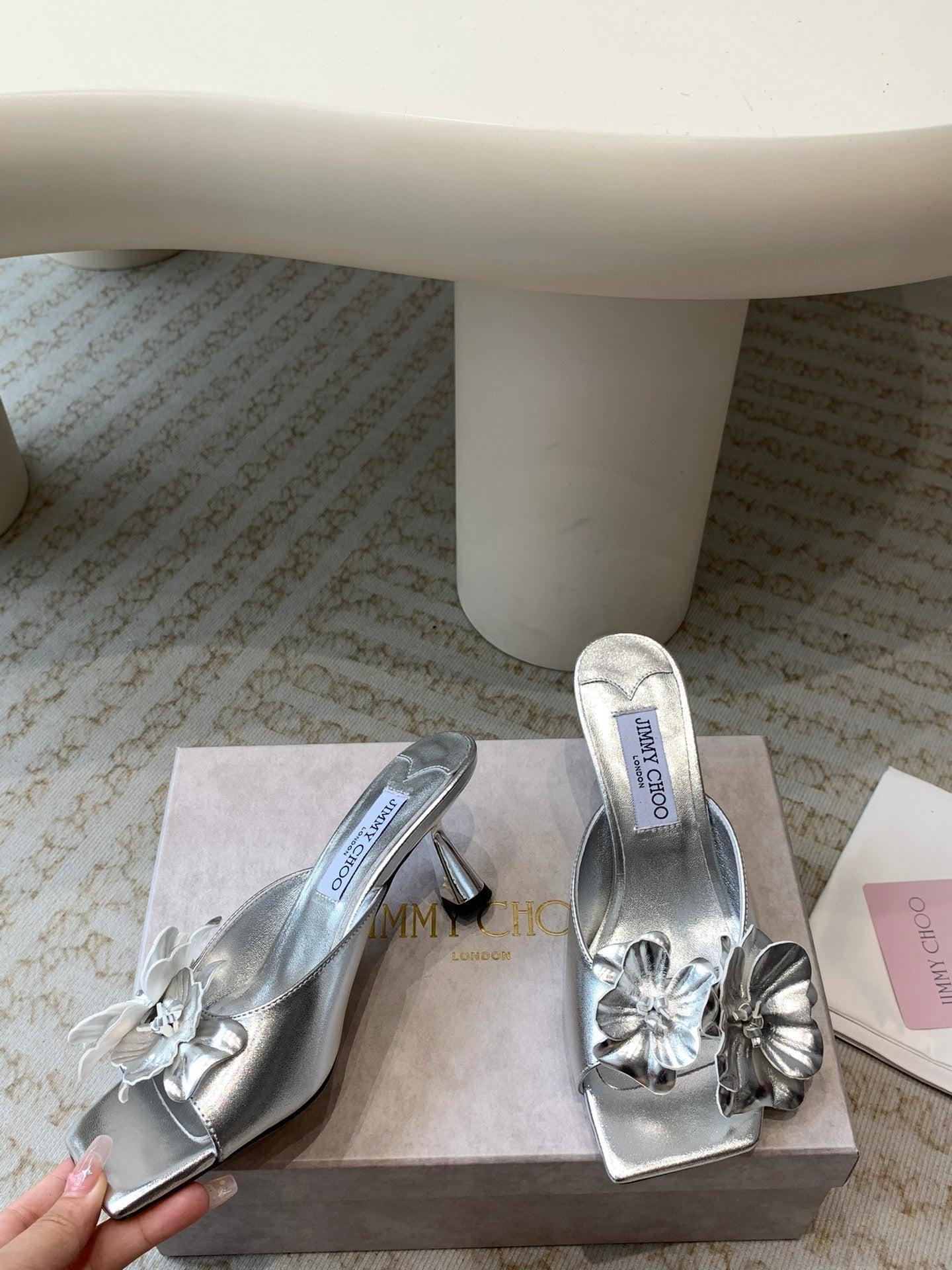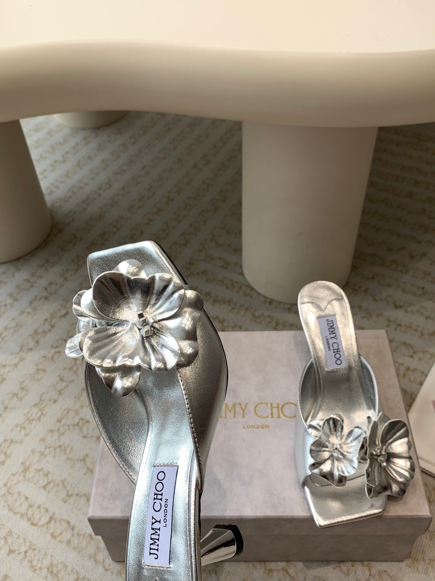 Jimmy Skye 70mm In Silver Cowhide Mules 586565