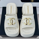 Large Double C Platform Slippers White
